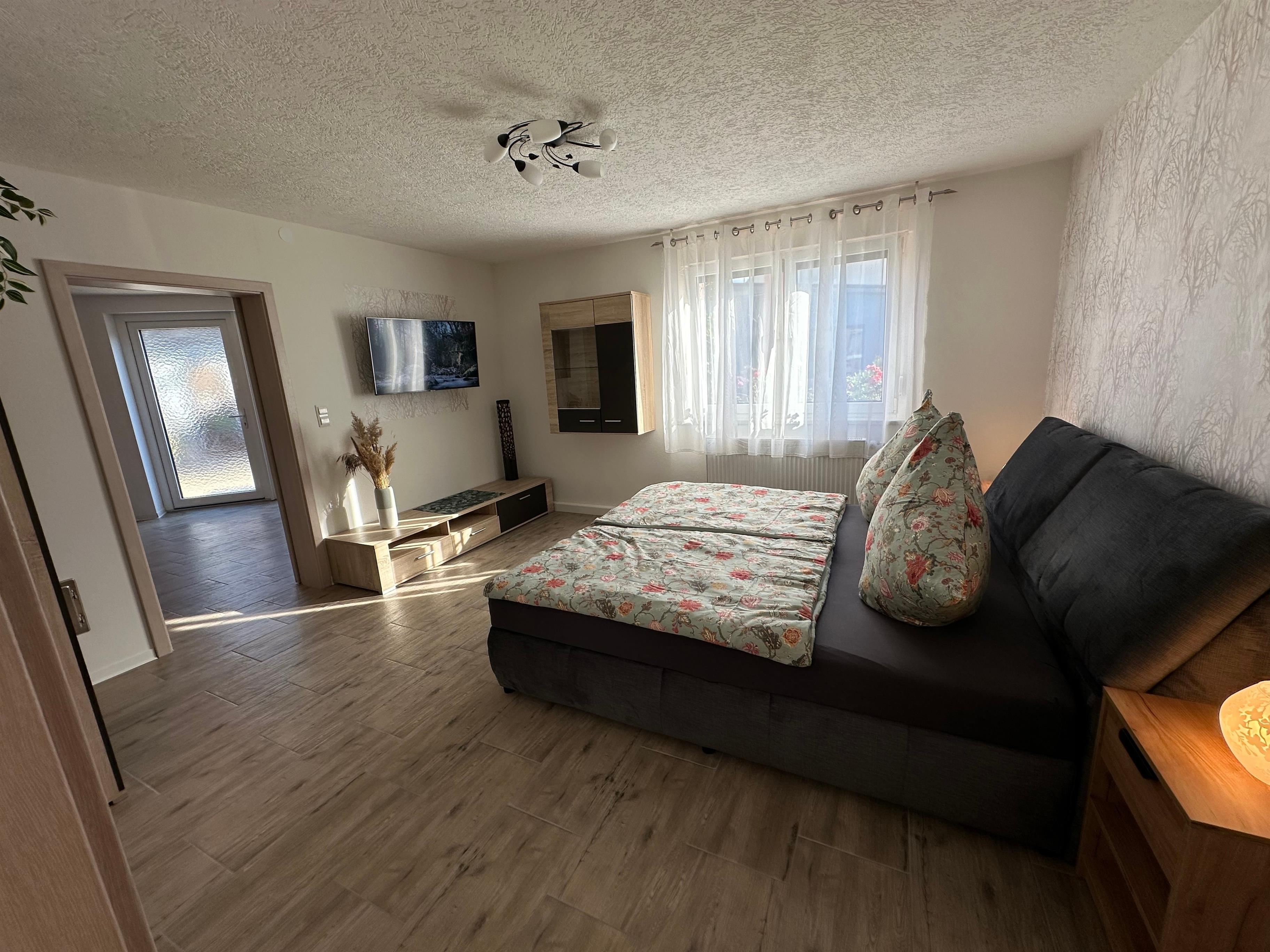 Die Ferienwohnung besteht aus einem Wohn- und Schlafzimmer, einem Bad mit begehbarer Dusche und großzügige Küche mit Essbereich. Im Hof befindet sich ein Café wo man einkehren kann um sich etwas zu gönnen. Außerdem ist an drei Tagen in der Woche der Biergarten abends geöffnet, um den Tag gemütlich ausklingen zu lassen.