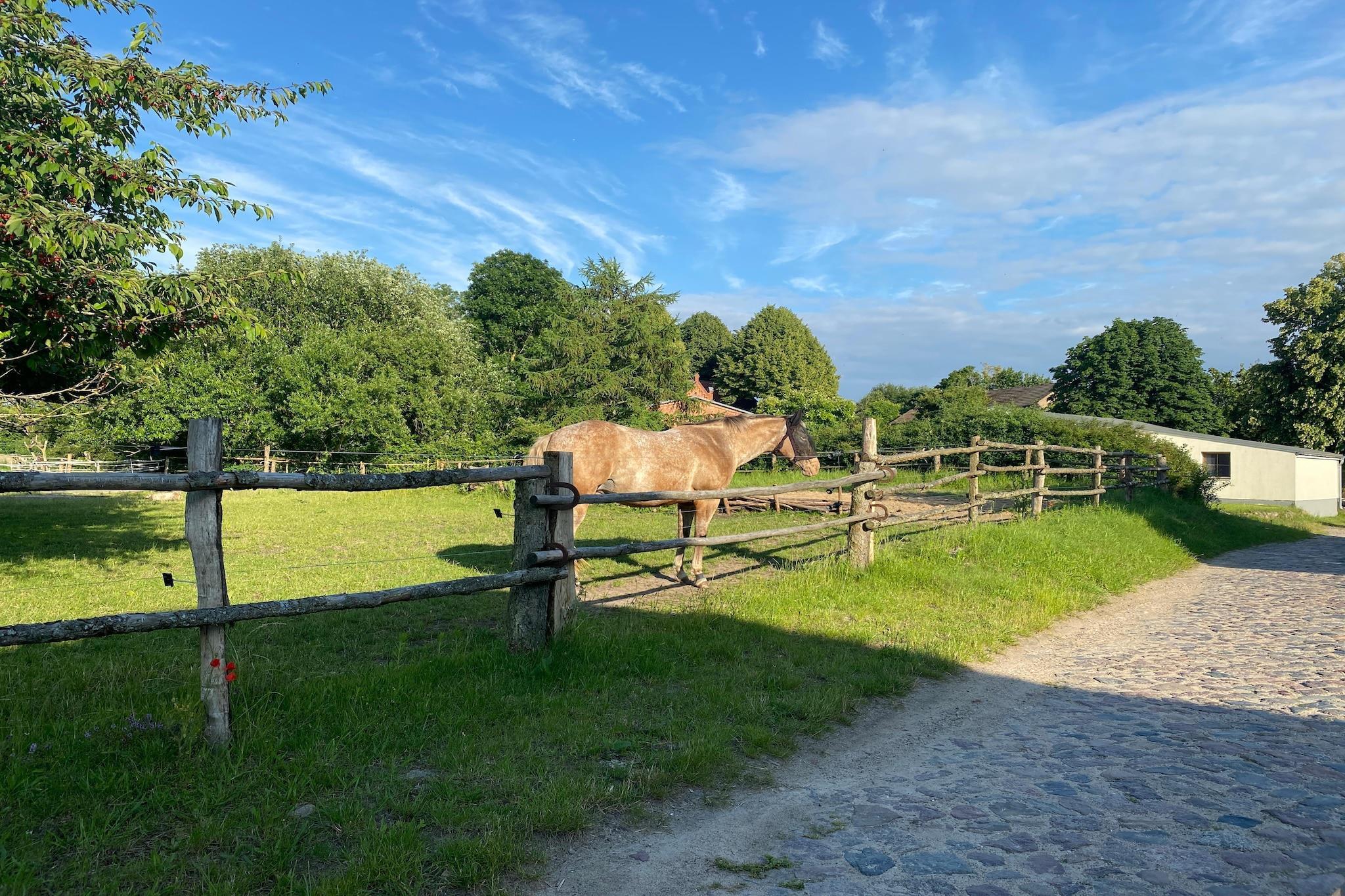 Denne virkelig innbydende og koselige ferieleiligheten i moderne herregårdsstil ligger på en tidligere eiendom i landsbyen Lübberstorf i Mecklenburg-Vorpommern, nær hansabyen Wismar, omgitt av en stor hage. Den idyllisk beliggende gården med 10 000 m² land ligger i sentrum av Lübberstorf, kun 1,5 km fra Neuklostersee med svømmebasseng og 2 km fra Neukloster (Sternberger Seenlandschaft). Denne velutstyrte ferieleiligheten ligger i første etasje. Feriehuset ditt har et fullt utstyrt kjøkken. Fokuspunktet er den koselige stue og spisestue. Leiligheten har terrasse. Leiligheten er også ideell for gjester som liker hester eller til og med ønsker å reise på ferie med hestene sine. I samme bygning er det også 4 hestebokser av meget høy kvalitet, hvorav to kan leies mot betaling. Leiligheten har også 1 koselig soverom. På uteområdet kan du nyte dagen på din egen sittegruppe. Det er også en annen fritidsbolig på eiendommen. Lübberstorf ligger midt i et sjarmerende landskap. Feriegjester som ønsker å nyte ikke bare havet og stranden, men også fotturer eller sykling kan for eksempel: Du kan for eksempel gå direkte fra ferieleiligheten gjennom jordene og en skog til innsjøen Neukloster. Høydepunkter inkluderer: Alle forbruksavhengige energikostnader, Parkeringsplass Wi-Fi