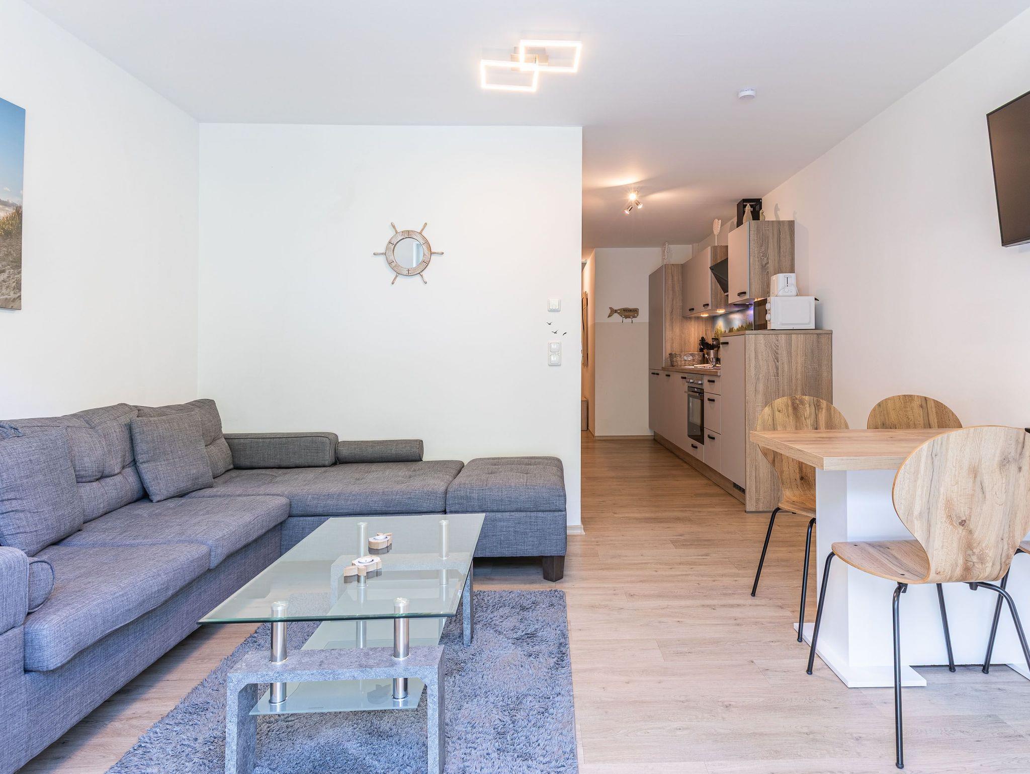 Freuen Sie sich auf diese exklusive Ferienwohnung mit reichlich Komfort. Die Ferienwohnungen im Haus Aaron sowie das Appartementhaus wurden im Jahr 2022 neu erbaut. Im hellen, und modern eingerichteten Wohnzimmer erwartet Sie eine gemütliche Couchgarnitur, einen Esstisch mit eleganten Stühlen, sowie eine komfortable offene Küche mit einem Geschirrspüler. Vom Wohnzimmer gelangen Sie auf den große Sonnen-Balkon mit Ihrem privaten Strandkorb. Vom Flur dieser modernen Ferienwohnung erreichen Sie in das große Schlafzimmer, welches über einen geräumigen Kleiderschrank sowie zwei Einzelbetten (90cmx200cm), diese können aber auch auseinander geschoben werden, verfügt. Im zweiten Schlafzimmer erwartet Sie ebenfalls ein Kleiderschrank und sowie ein Doppelbett (160 cm x 200 cm). Die Ferienwohnung verfügt zusätzlich über zwei moderne Bäder, eins mit Dusche [&] WC und das zweite Badezimmer mit einer Badewanne [&] WC. Genießen Sie Ihren Urlaub in tollen Ambiente und mit exklusiver Ausstattung. Ihren PKW können Sie auf dem großen Grundstück auf der privaten Parkfläche abstellen. Eine Wallbox zum laden von E-Autos ist ebenfalls auf dem Gelände vorhanden (gegen Gebühr buchbar).