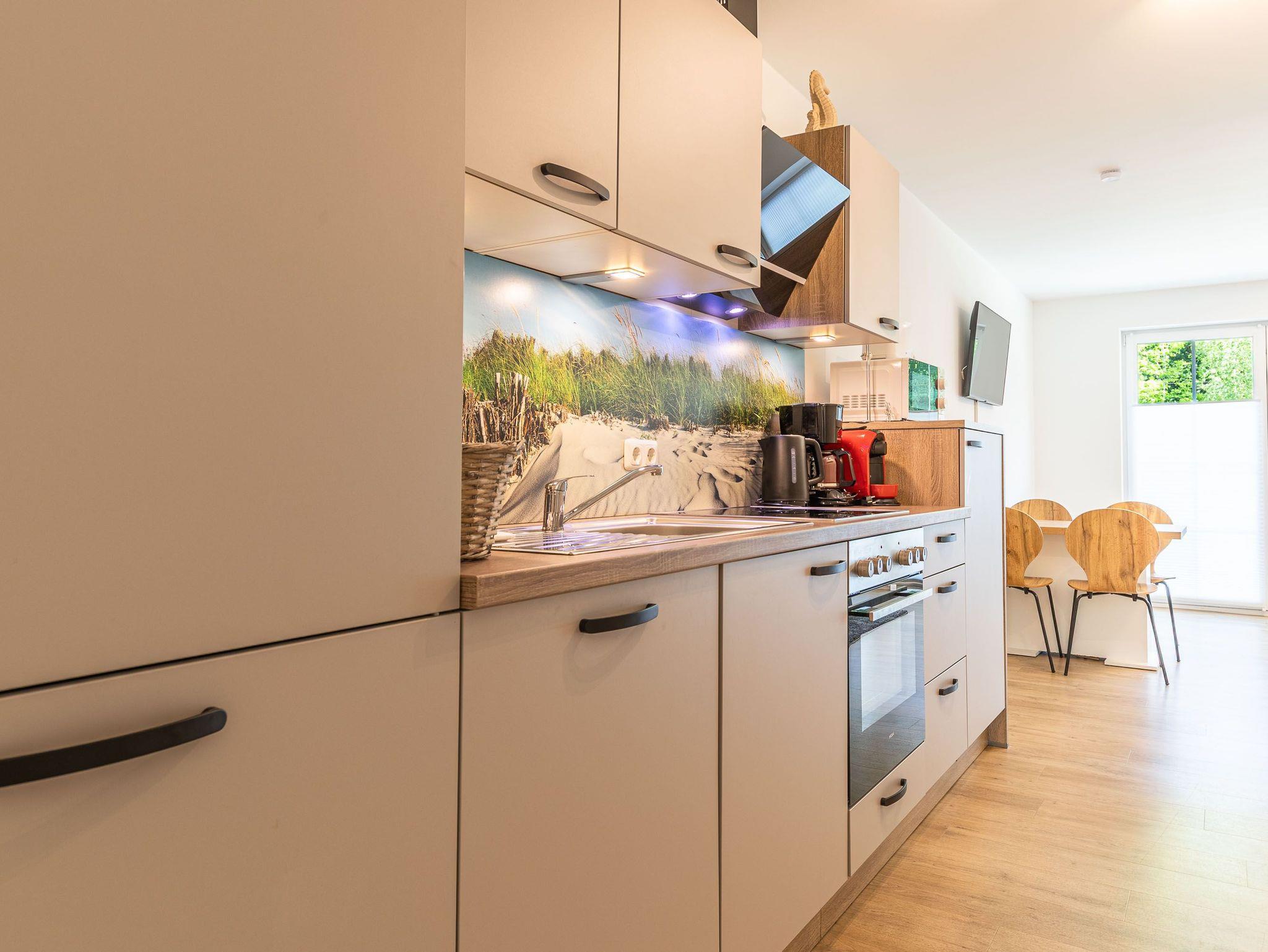 Balkon, Fußbodenheizung, Küchenzeile, 2 Schlafzimmer, Geschirrspüler, 2xBäder (1x Duschbad/WC, 1x Vollbad/WC), Fön, TV, Strandkorb auf dem Balkon, kostenl. W-Lan, inkl. PKW-Außenstellplatz vor dem Haus, Wallbox auf dem Grundstück (gegen Gebühr).