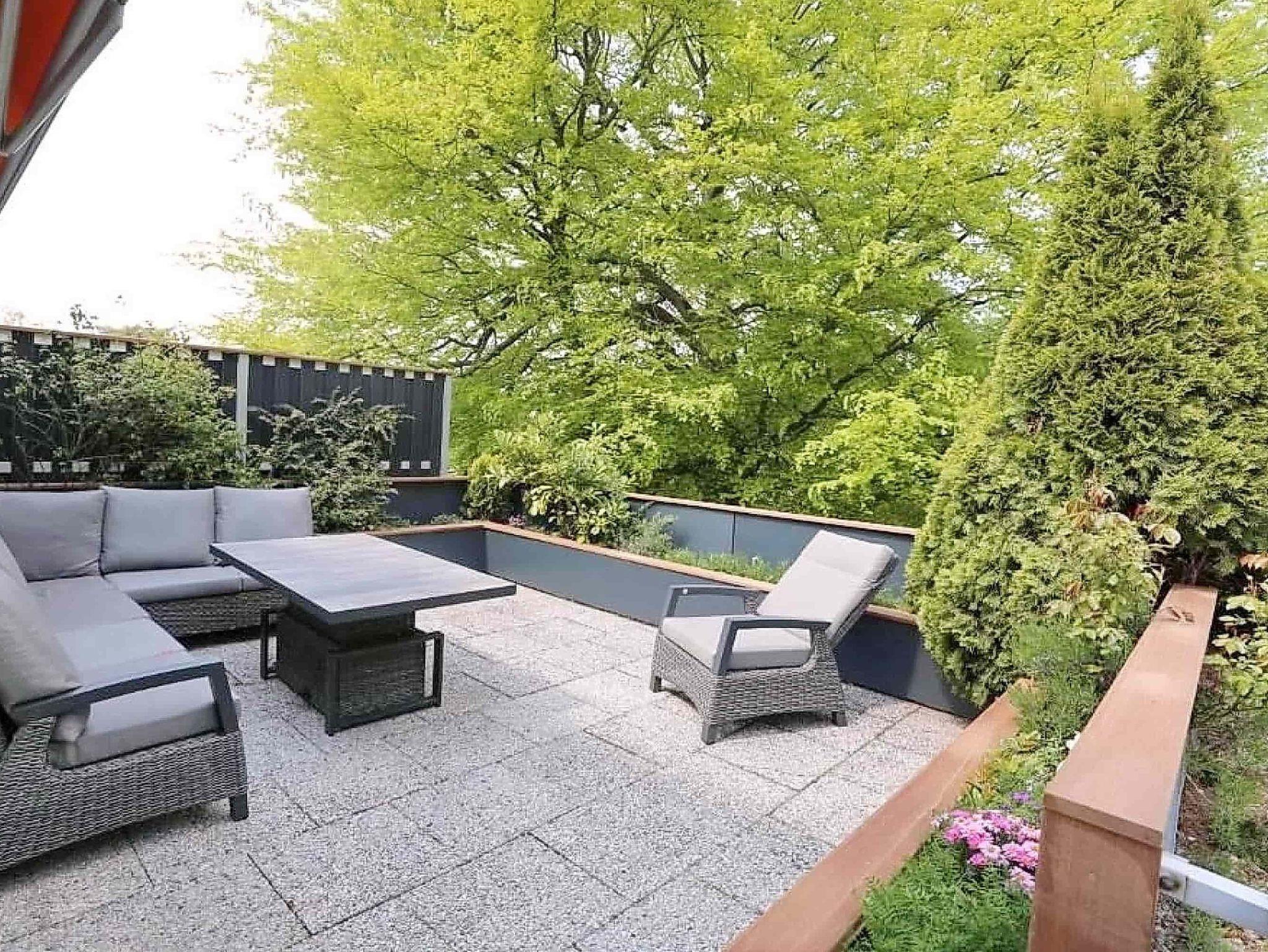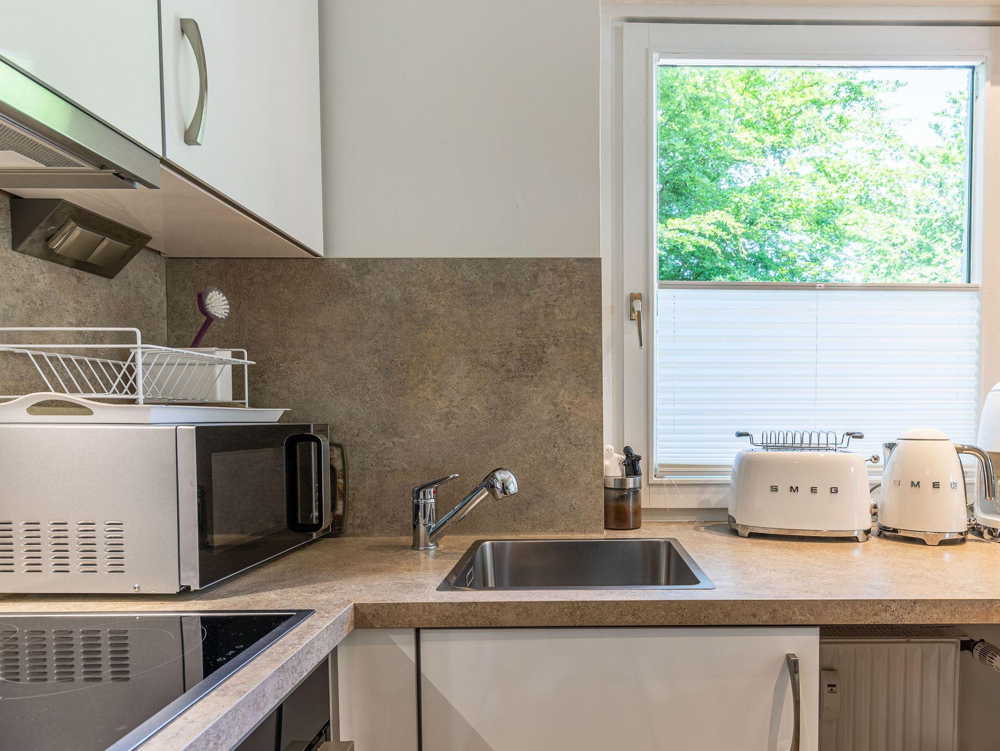 1 1/2-Zimmer-Ferienwohnung, 2. OG, ca. 40 m² mit Dachterrasse von ca. 40 m² mit Blick zur Grünanlage.