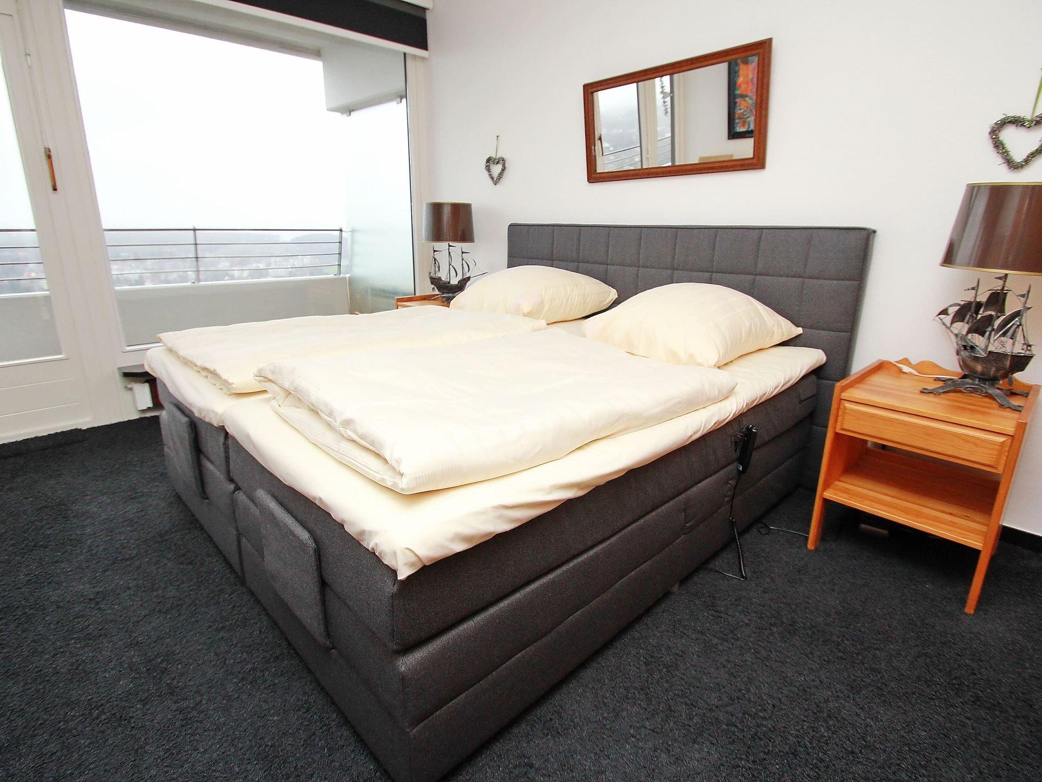 Dieses komfortable Appartement in bevorzugter Lage hat eine ausgesprochen geschmackvolle Einrichtung und lädt zu einem schönen Urlaubsaufenthalt an der Ostsee ein. Im Wohnraum stehen eine gemütliche Ledercouch mit Tisch, eine Anrichte und eine Essecke neben der hochwertigen Einbauküche. Das Schlafzimmer ist ausgestattet mit einem bequemen Boxspringbett (2x 90 cm x 200 cm) mit elektrisch verstellbarem Kopf- und Fußteil und einem Kleiderschrank. Das moderne Bad geht vom Flur ab. Von Wohn- und Schlafraum erreichen sie den großen Balkon. Hier haben Sie einen traumhaften Ausblick auf die Strandpromenade, weit über die Lübecker Bucht bis hin zum Ostsee-Horizont.