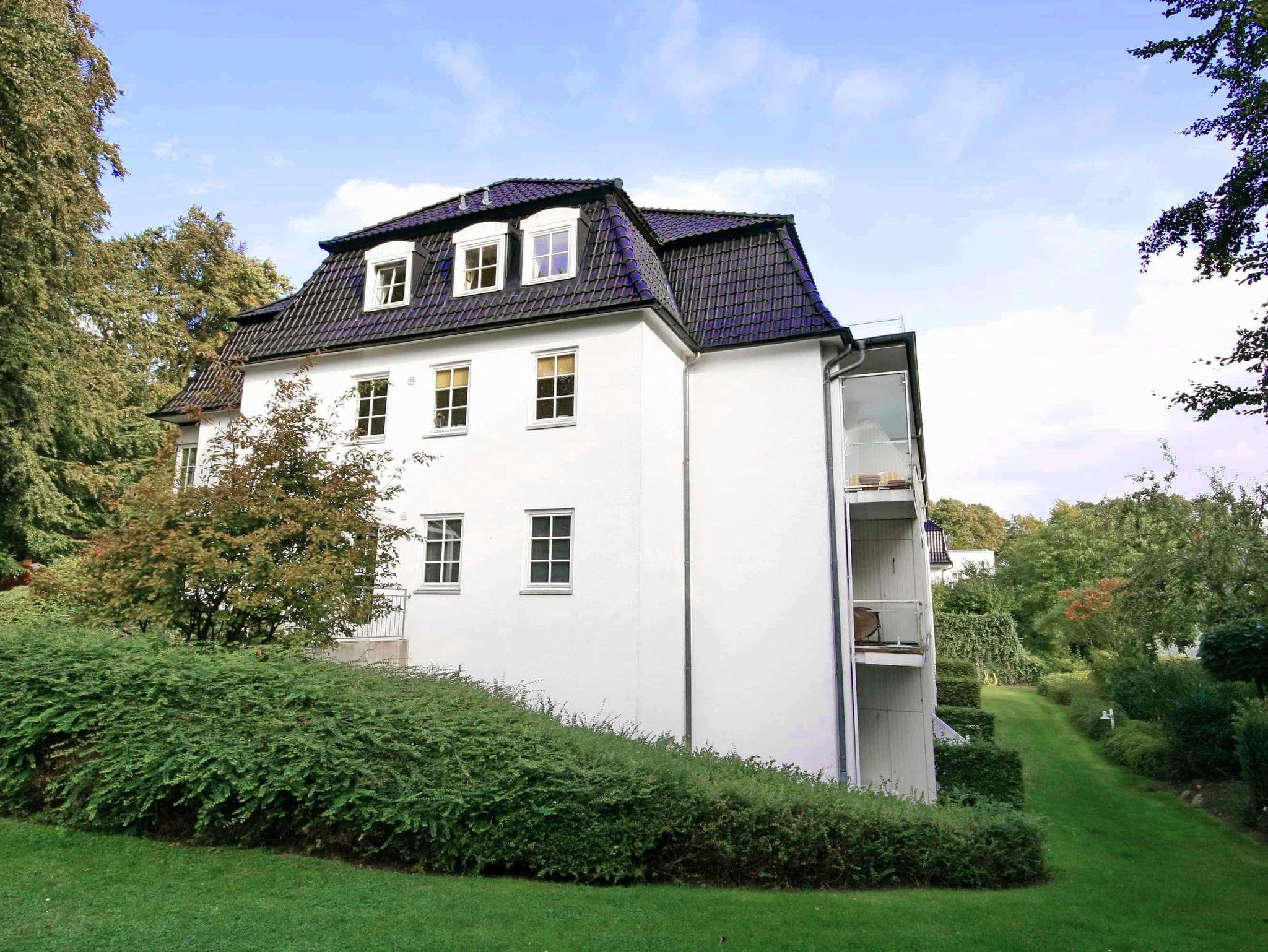 1-Zimmer-Appartement, 1. OG, ca. 30 m² mit Südbalkon zur Gartenanlage und seitlichem Meerblick.
