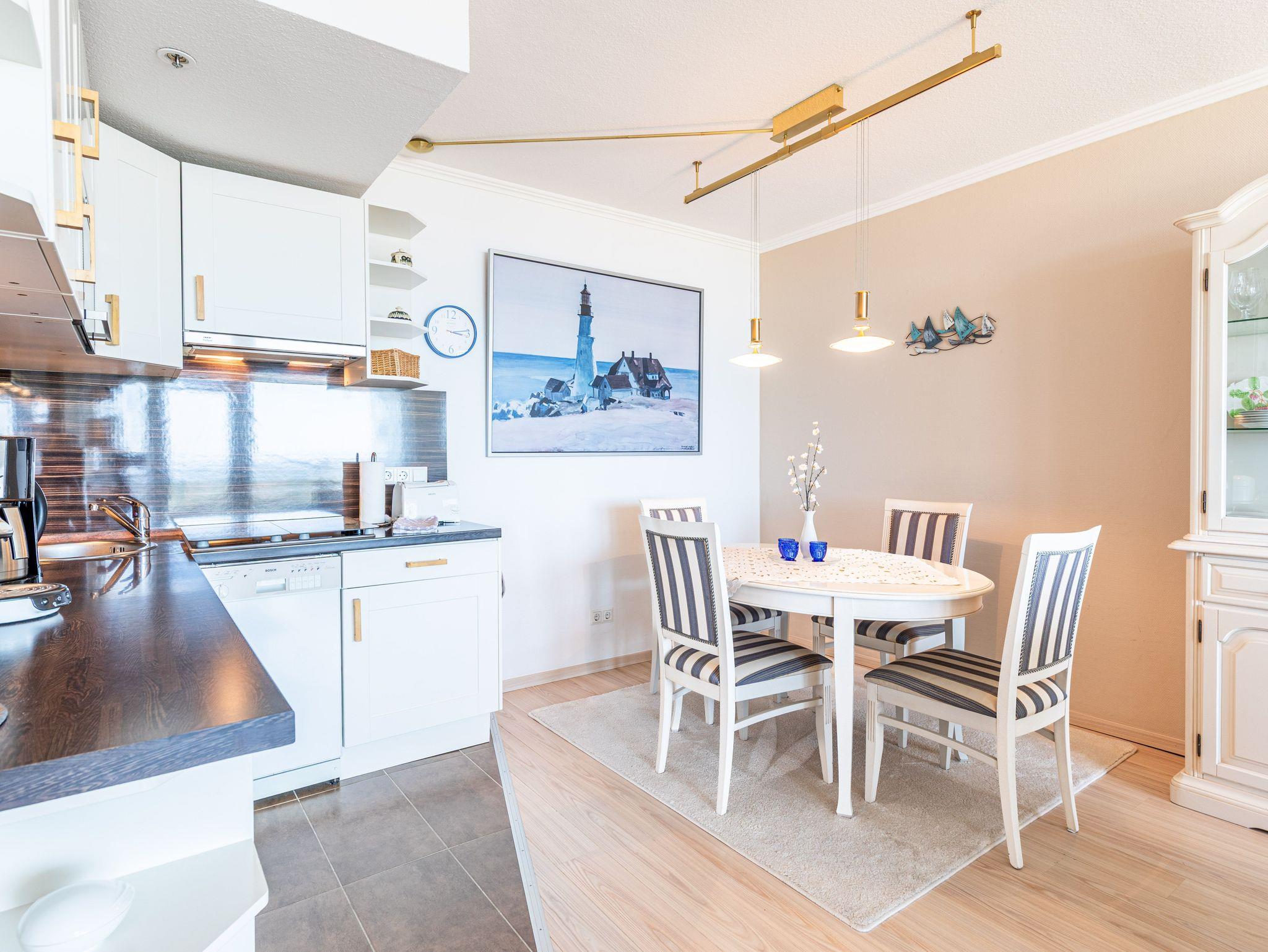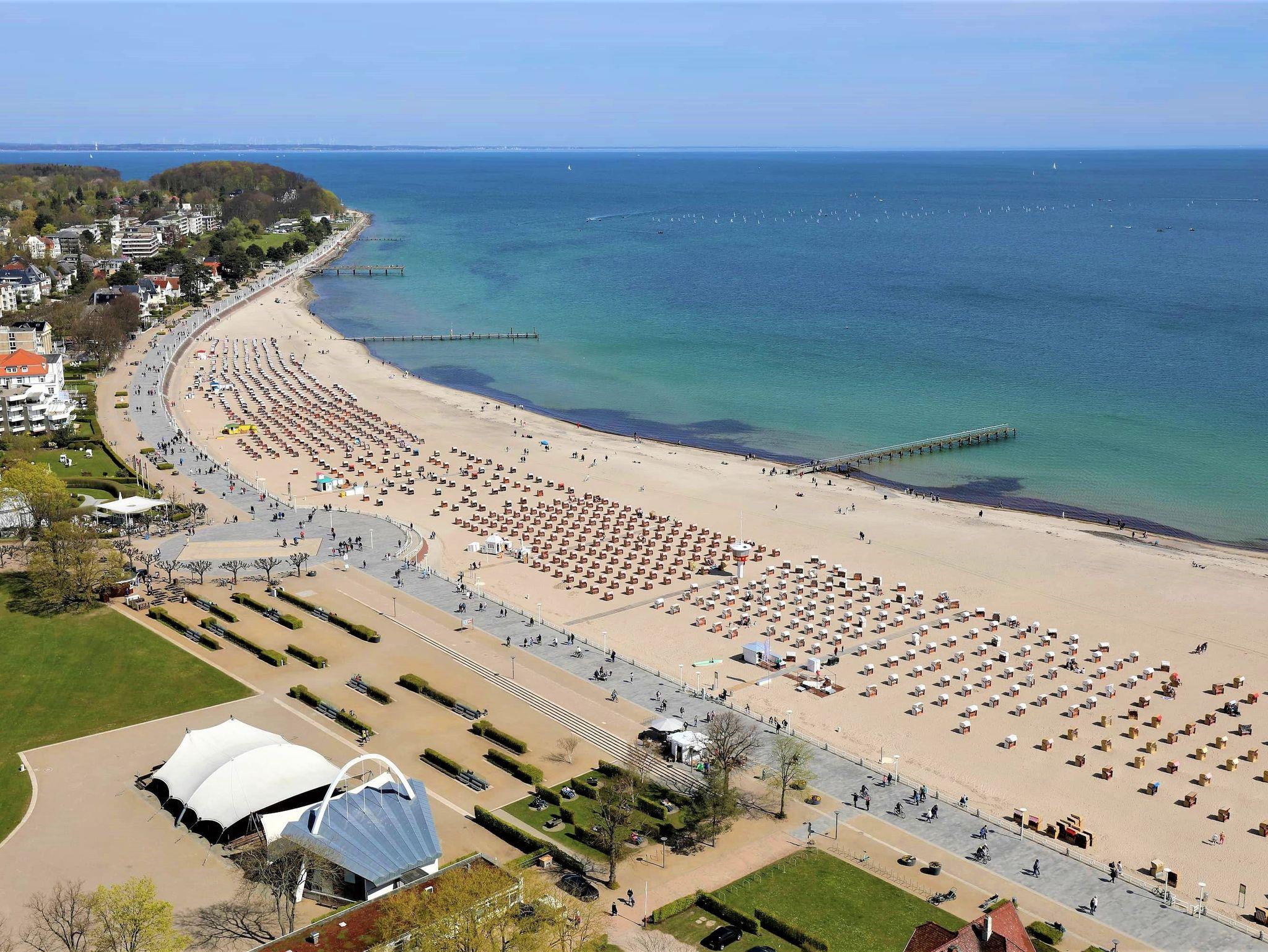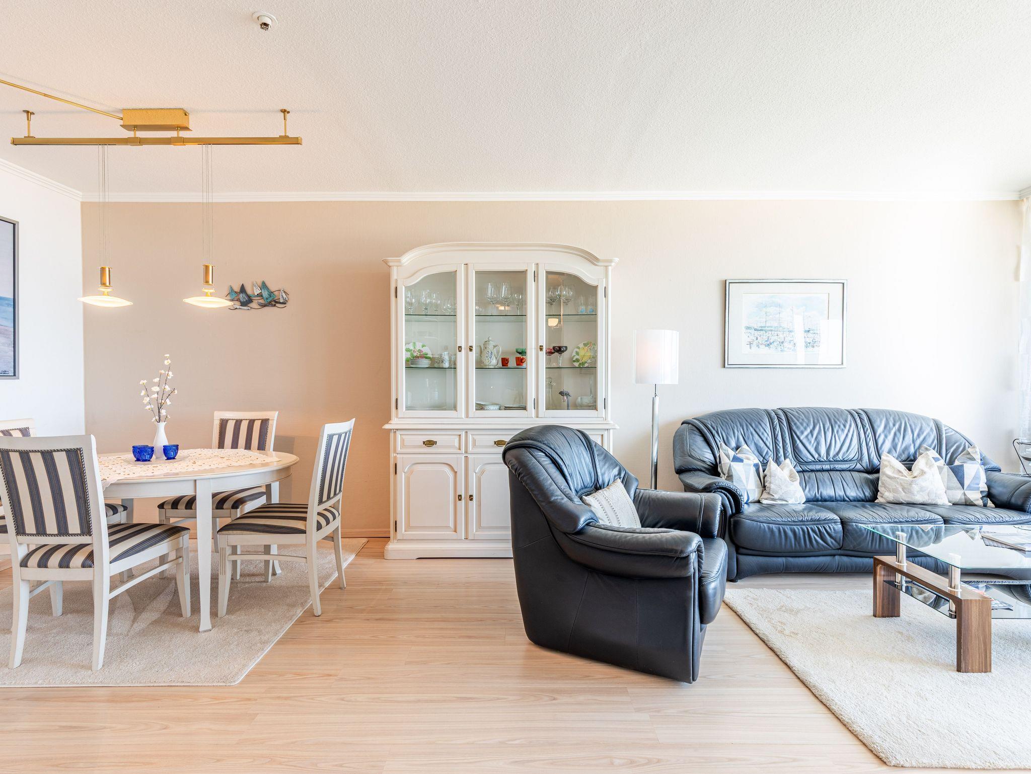 Direkt am Strand erwartet Sie hier ein modernes, im maritimen Stil möbliertes 2-Zimmer-Appartement mit allem Komfort zum Wohlfühlen. Im Wohnraum befinden sich ein gemütlicher Dreisitzer und ein Sessel mit einem Couchtisch sowie ein Esstisch mit vier Stühlen. Dank der gut ausgestatteten Küchenzeile, die sich ebenfalls im Wohnraum befindet, können Sie entscheiden, ob Sie selber kochen oder sich durch die kulinarische Küche Travemündes schlemmen möchten. Im Schlafzimmer stehen ein bequemes Doppelbett (180cm x 200 cm) und ein Kleiderschrank.In der Wohnzimmernische befindet sich eine Sitz-/Schlafcouch (140 cm x 200 cm). Das Duschbad, das Sie vom Flur erreichen, ist in warmen Farben gehalten. Die sehr geschmackvoll eingerichtete Wohneinheit lässt keine Wünsche offen und lädt zu einem wunderschönen Urlaub an der Ostsee ein. Den großen Balkon erreichen Sie von beiden Zimmern. Hier genießen Sie einen fantastischen Blick auf den Strand und die Lübecker Bucht.