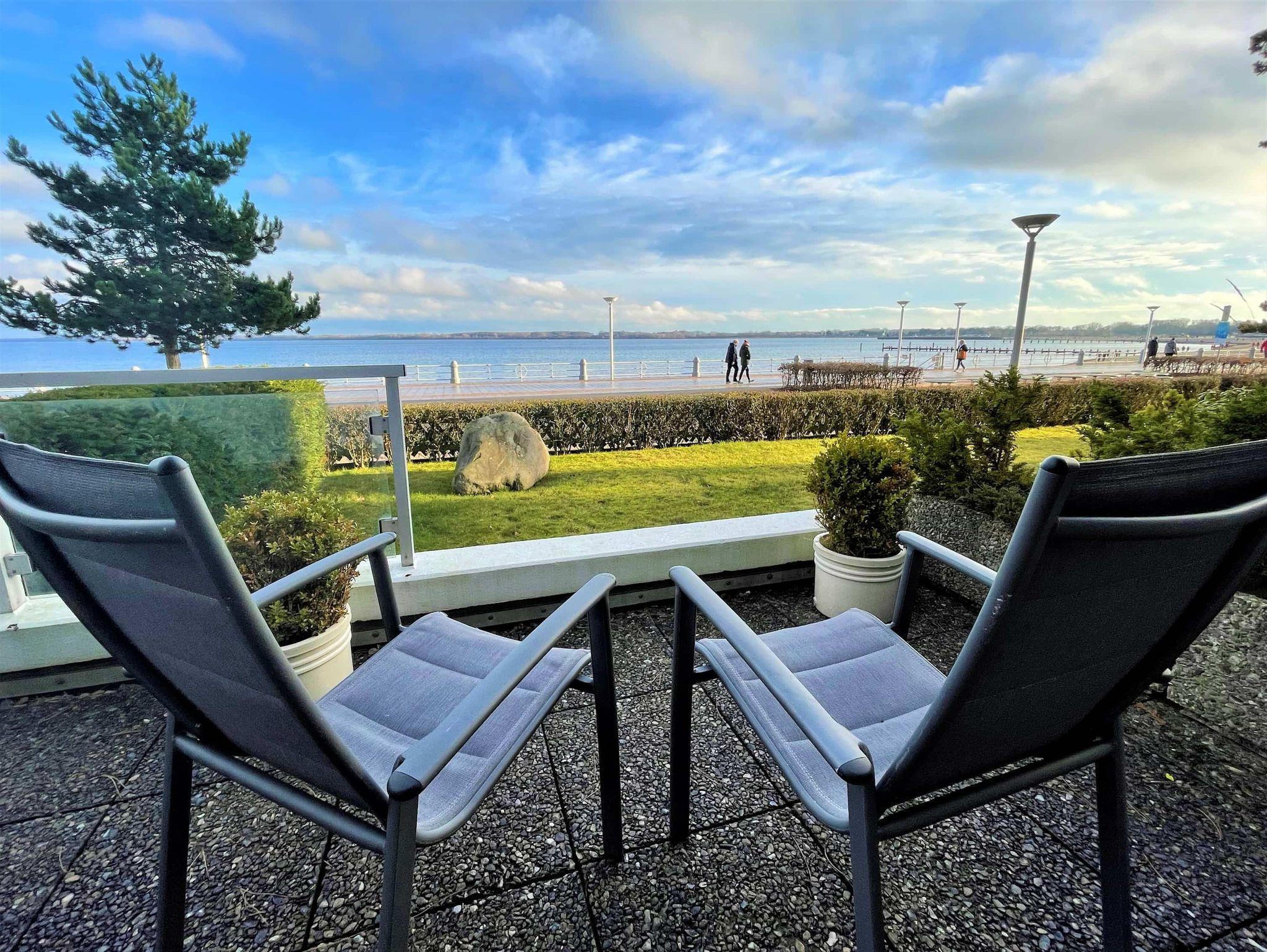 2-Zimmer Appartement, Erdgeschoss, ca. 40 m² mit Meerblick und Terrasse direkt am Strand.