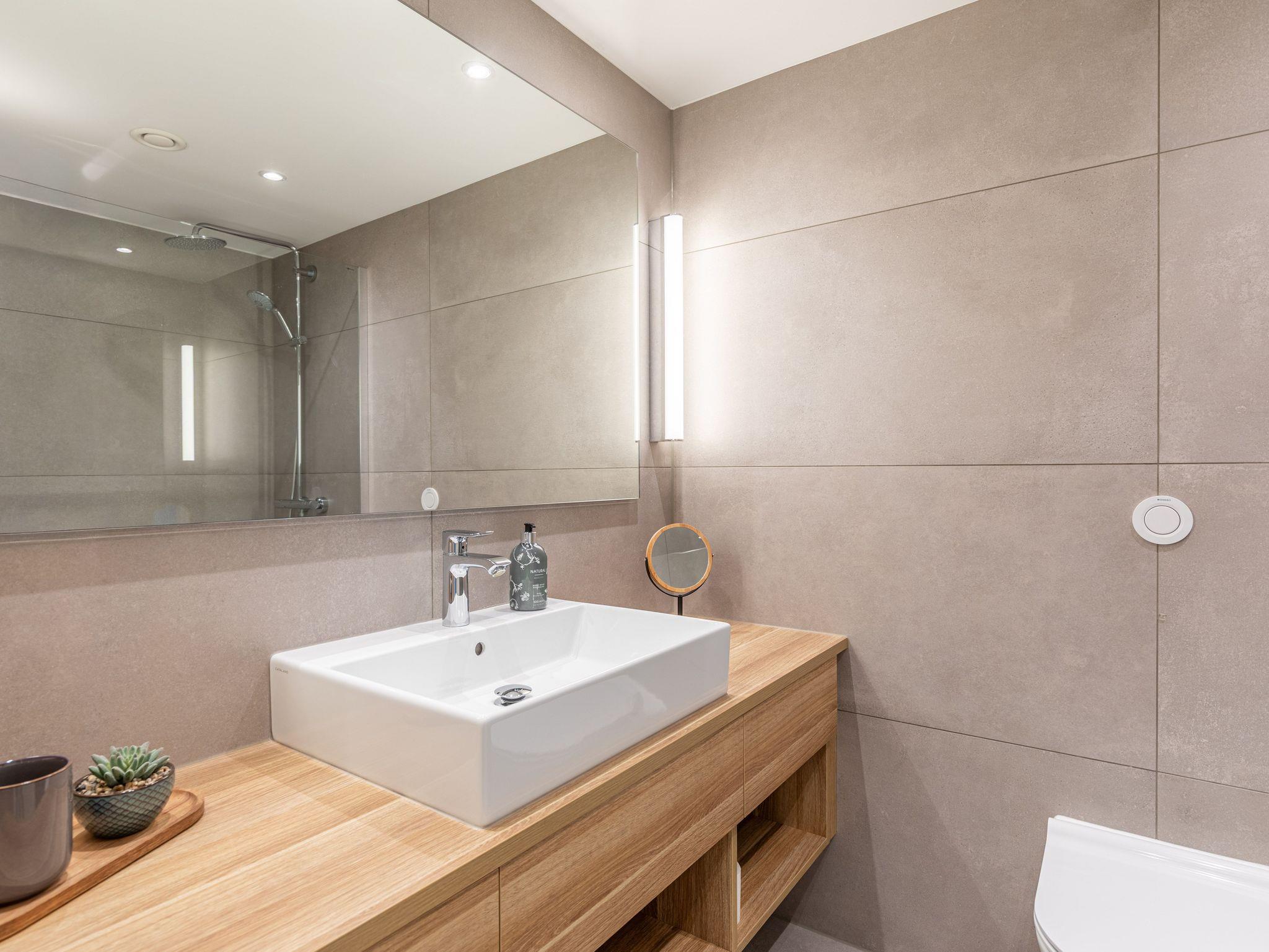 Im Wohnbereich erwartet Sie ein komfortables Doppelbett (160 cm x 200 cm, verstellbare Lattenroste), eine gemütliche Ledercouch, sowie ein Essplatz direkt an der Fensterfront. Die gut ausgestattete Küchenzeile bietet Ihnen die Möglichkeit, selbst zu kochen, oder Sie genießen die kulinarischen Angebote der Restaurants in Travemünde. Das moderne Duschbad erreichen Sie über den Flur.