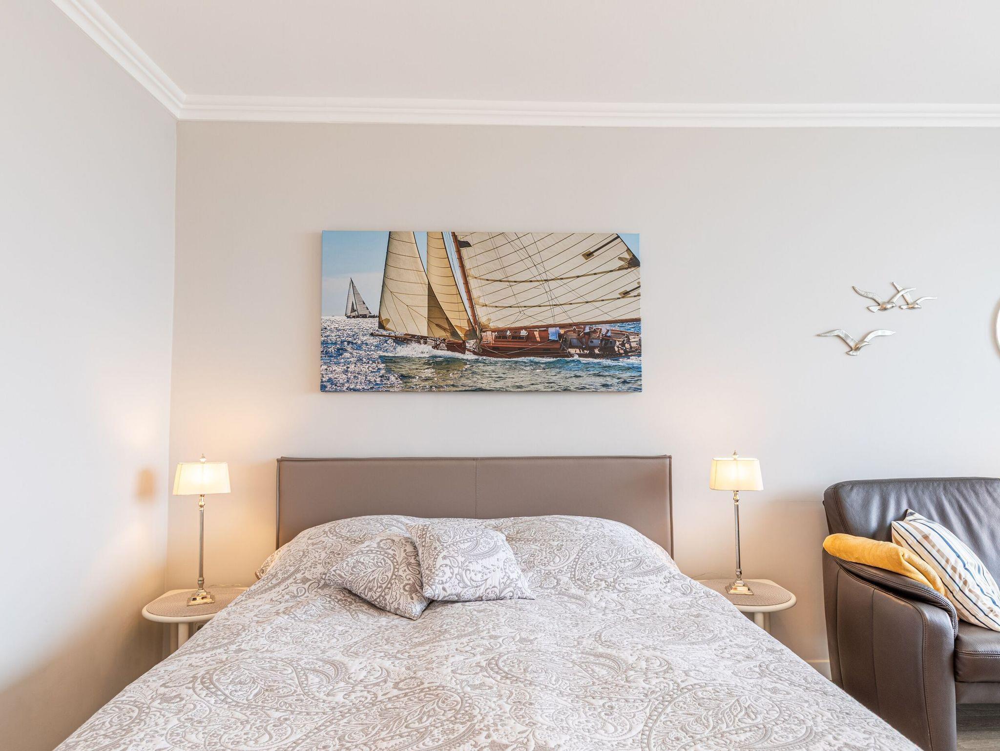 Dieses frisch renovierte Appartement besticht durch seine helle und moderne Einrichtung ? der perfekte Ort, um fern vom Alltag Ruhe und Entspannung zu finden. Vom Wohnraum oder Balkon aus können Sie das bunte Strandleben beobachten, die Schiffe beim Ein- und Auslaufen verfolgen und direkt auf die imposante Viermastbark Passat blicken.