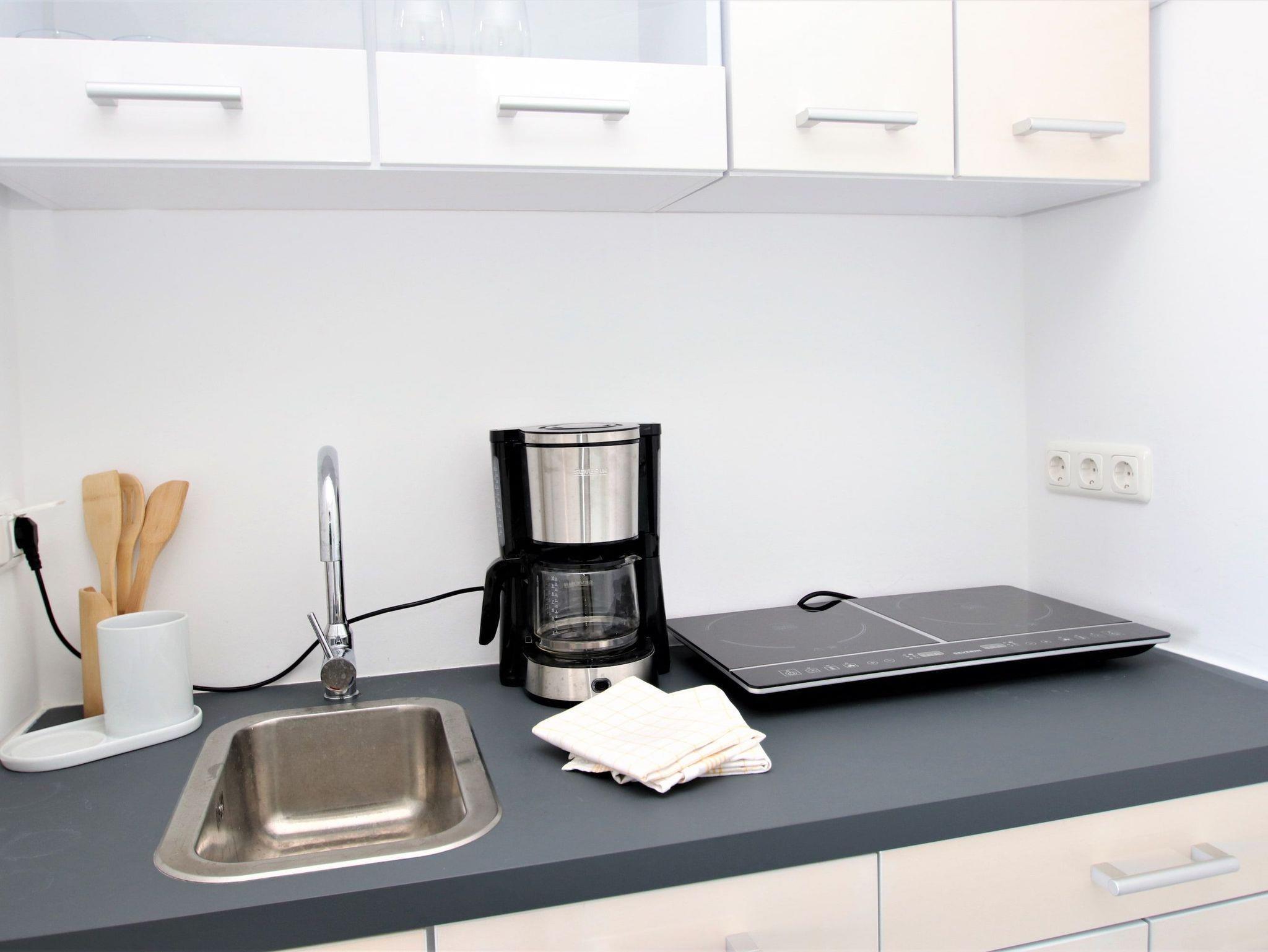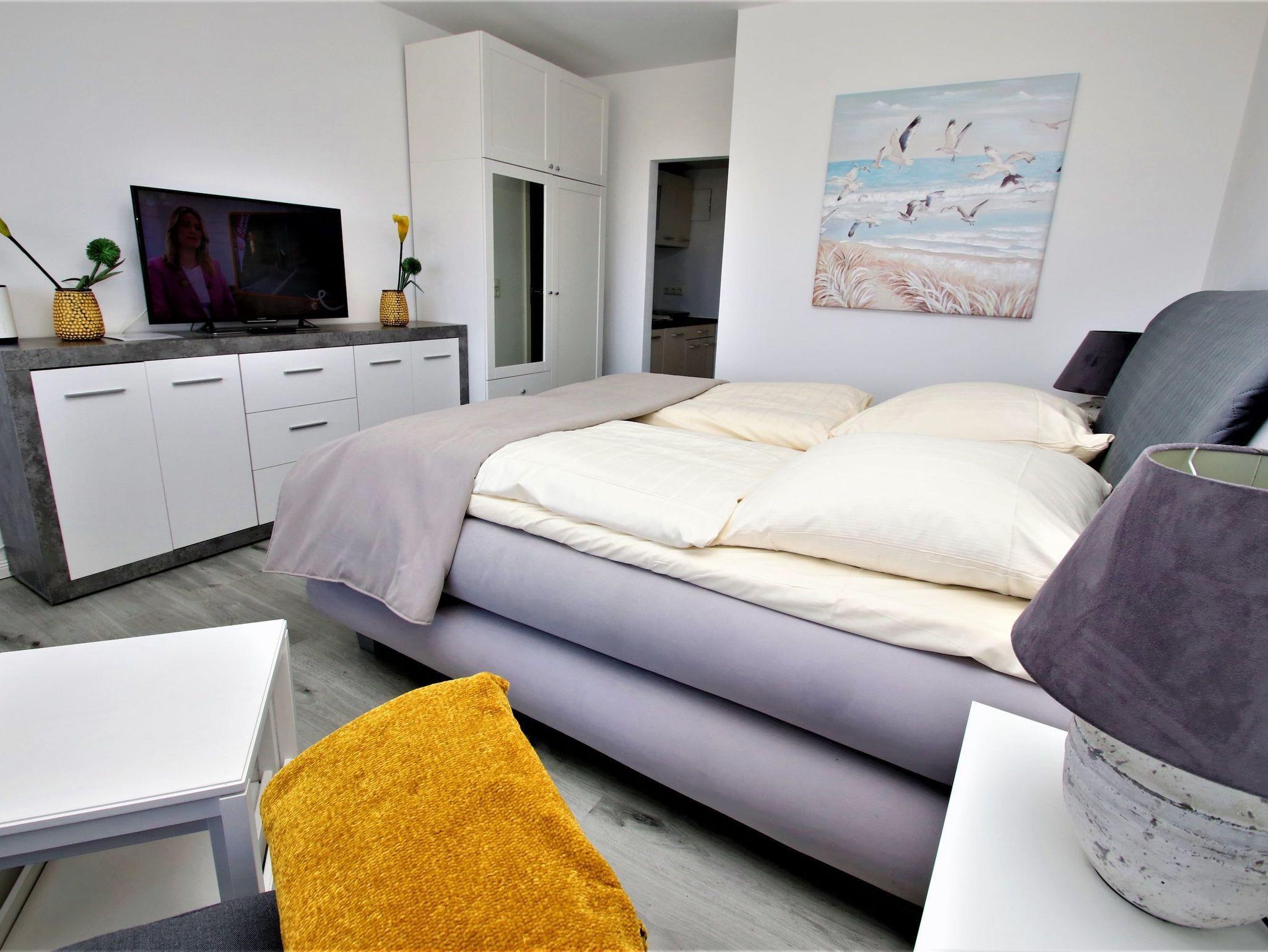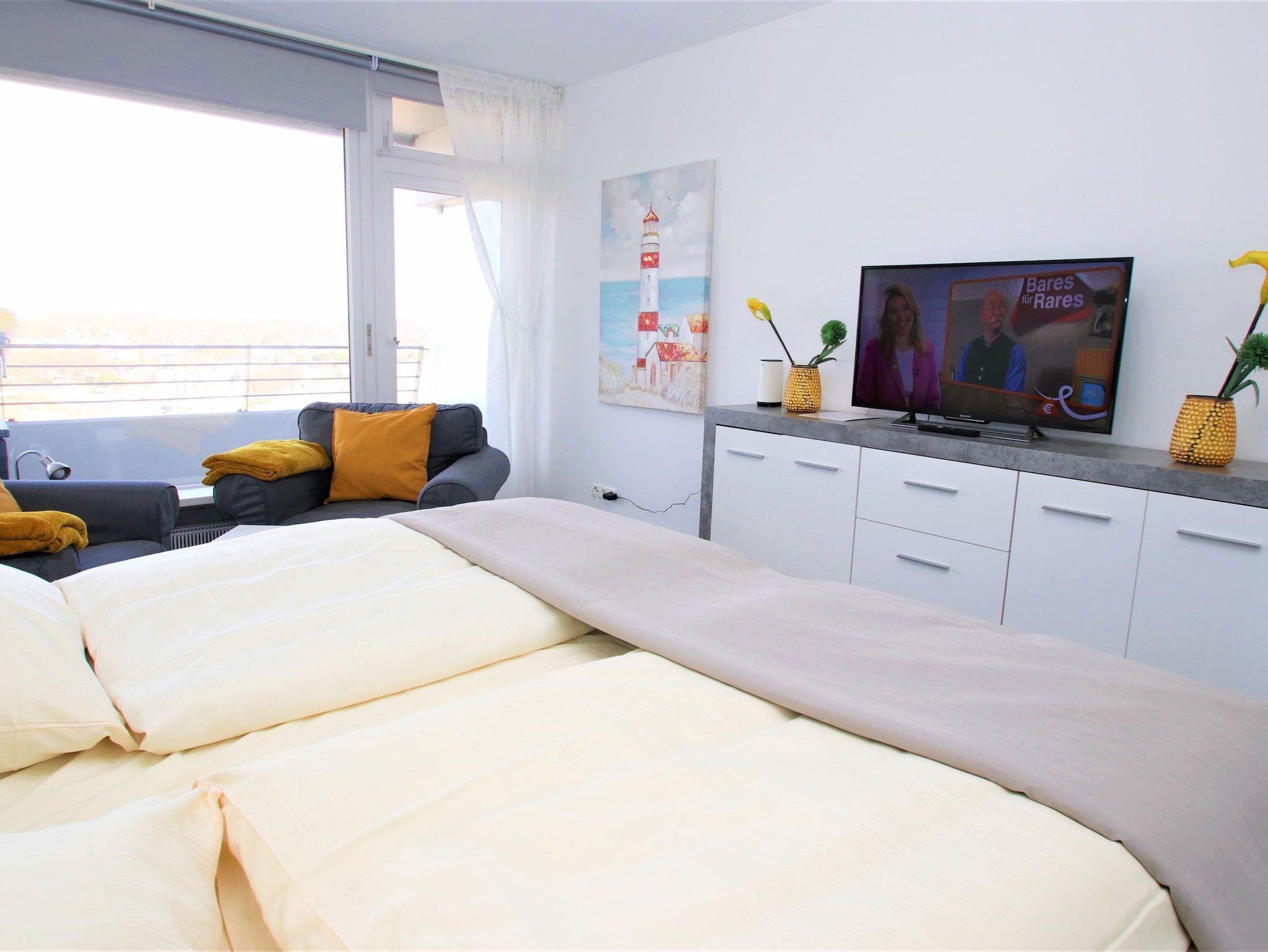 Sie wollen ausspannen und sich vom Alltag erholen? Dieses strandnah gelegene Appartement lädt zum Wohlfühlen und Entspannen fern des Alltags ein. Hier können Sie aus nächster Nähe das Strandleben genießen und das beschauliche Spiel der Segelboote im Wind beobachten. Der Wohnraum besteht aus zwei bequemen Sesseln und einem großen gemütlichen Doppelbett (2x 90 cm x 200 cm) mit Nachttischen. Außerdem stehen eine Kommode und eine großzügige Schrankwand mit viel Stauraum zur Verfügung. Die Küchenzeile ist im Eingangsbereich integriert und verfügt über einen Induktionsherd sowie einen Hotelkühlschrank. Vom Eingangsbereich erreichen Sie auch das moderne Dusch-Bad. Vom Balkon genießen Sie einen traumhaften Ausblick auf die Ostsee, die Strandpromenade und die Lübecker Bucht.