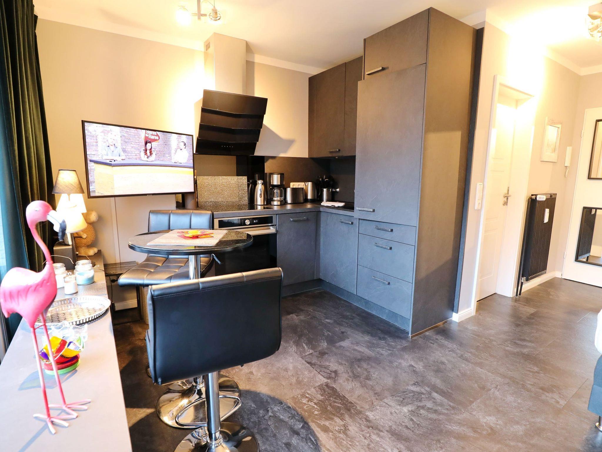 Genießen Sie Urlaub in diesem wunderschönen ruhigen 1-Zimmer-Appartement mit Fahrstuhl und barrierefreie Zugangsmöglichkeit über die Garage am nahegelegenen Godewindpark und Strand. Die Wohneinheit ist hochwertig mit zwei bequemen Sesseln zum Relaxen gerichtet und verfügt über ein elektrisch verstellbares Boxspringbett (1,60m x 2,00m). Die Einbauküche lässt keine Wünsche offen. Auf dem Balkon genießen Sie die Sonne.