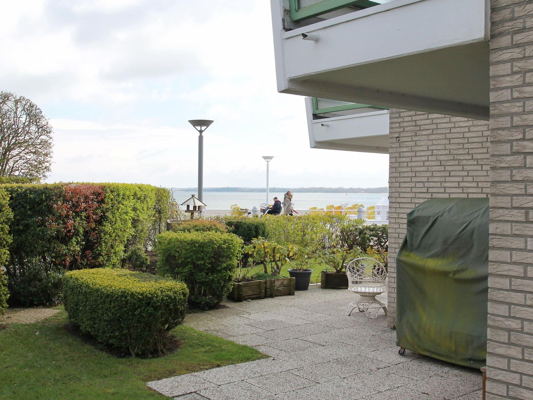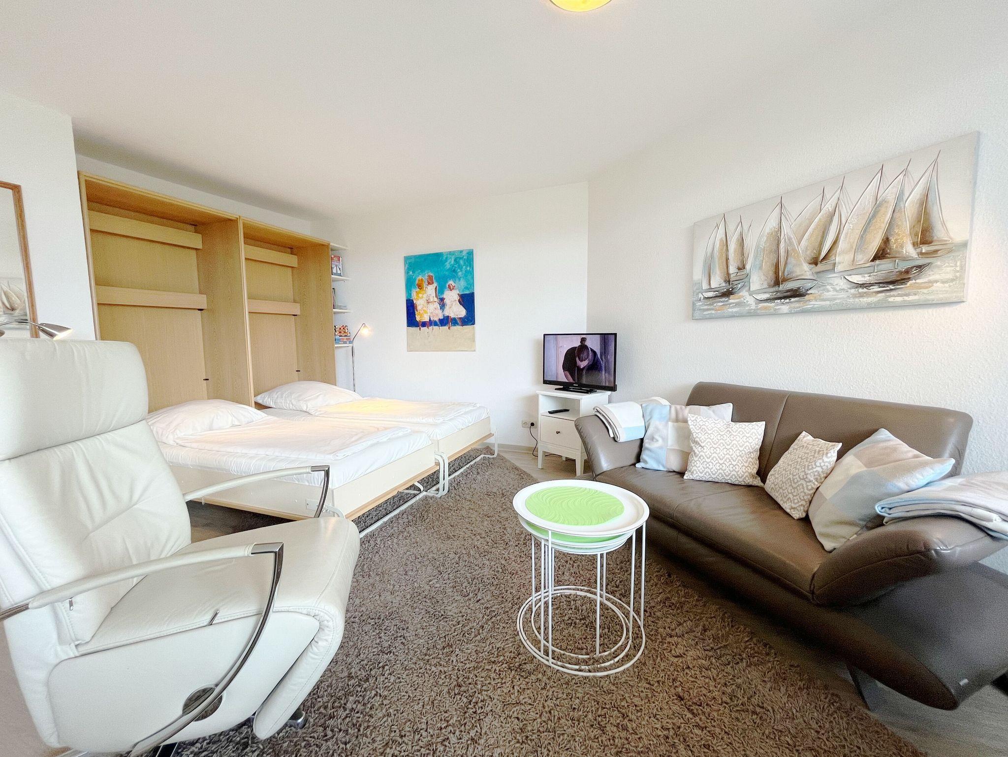 1-Zimmer-Appartement, Erdgeschoss, ca. 35 m² mit Teilblick auf das Meer.