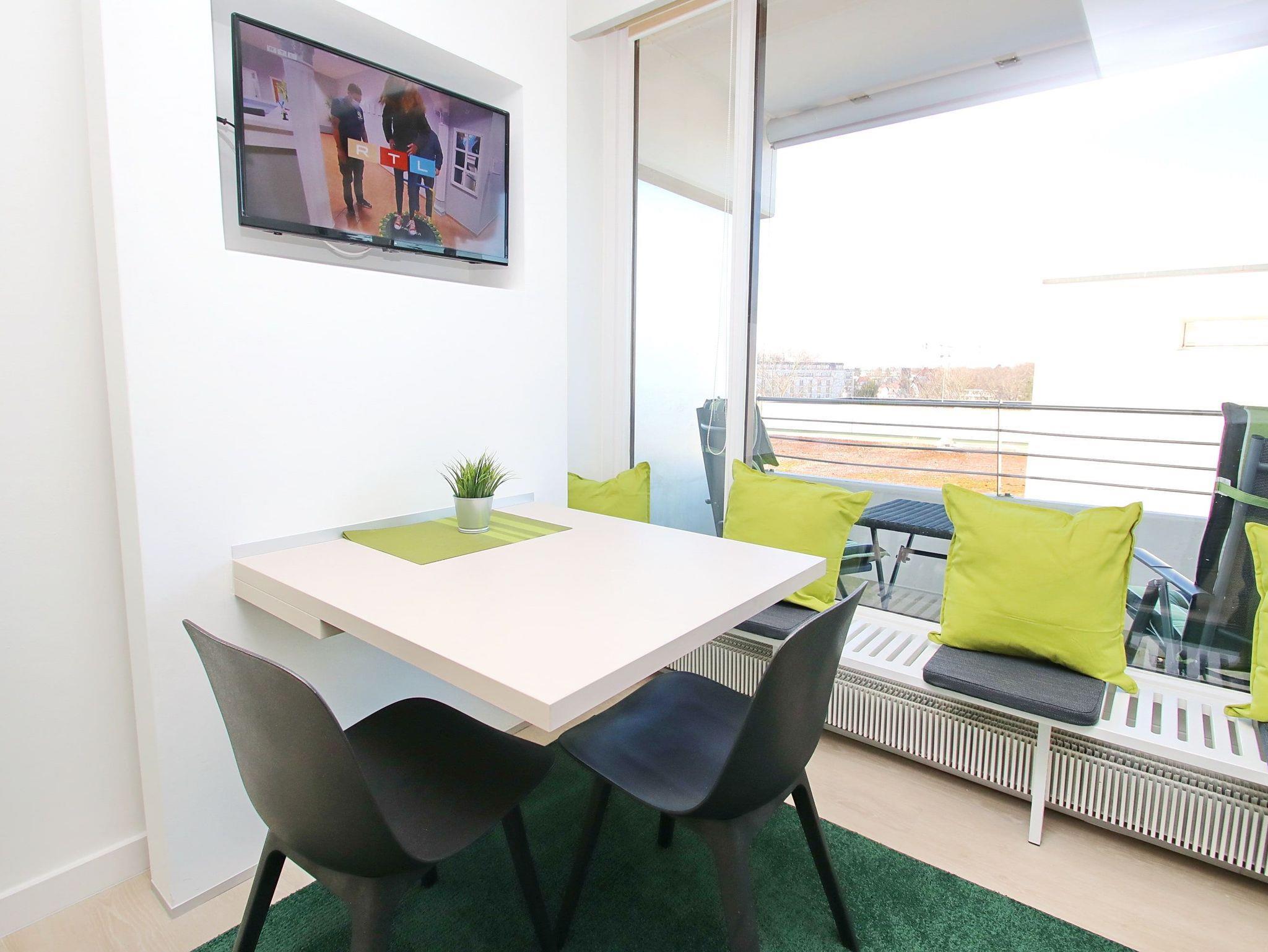 Balkon, Küchenzeile, Mikrowelle, Geschirrspüler, Duschbad/WC, Fön, TV, kostenl. W-Lan, Aufzug, inkl. Tiefgaragenstellplatz (Einfahrtshöhe: 1,85 m).