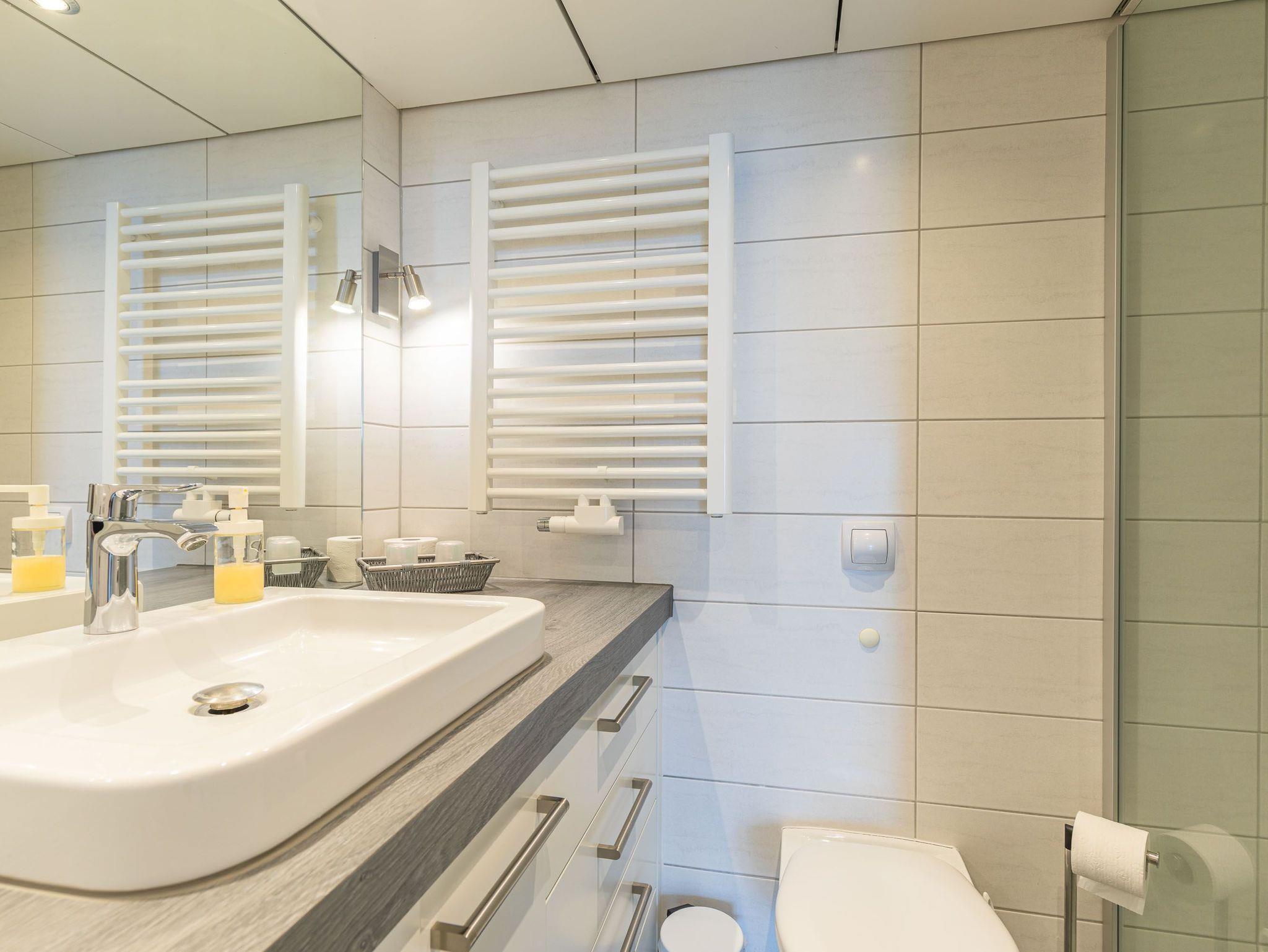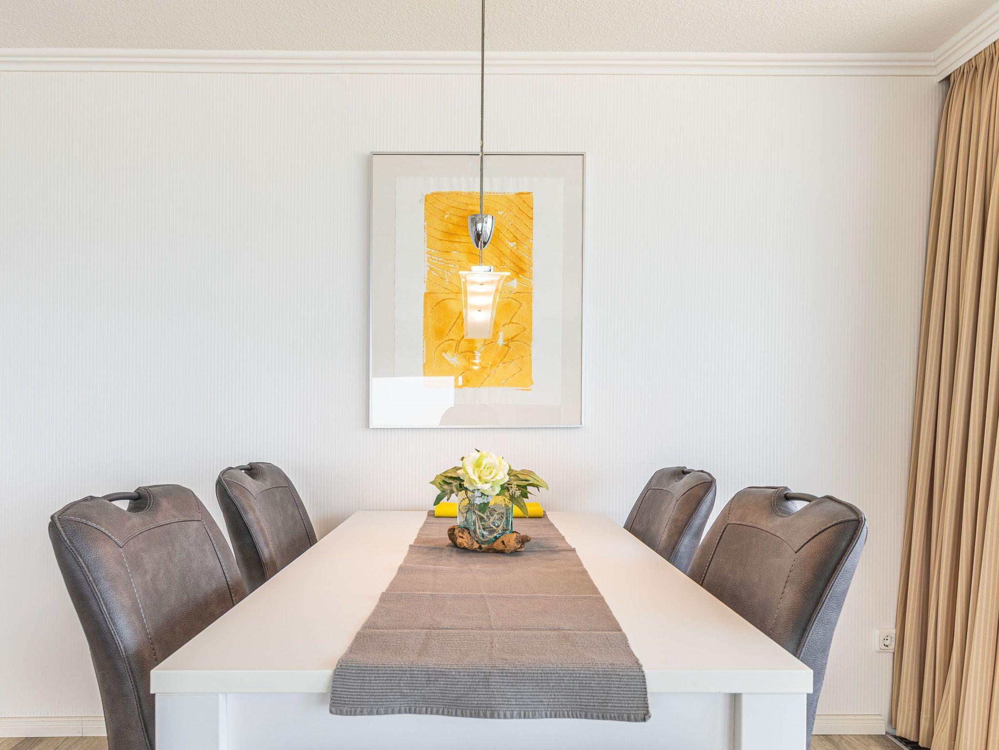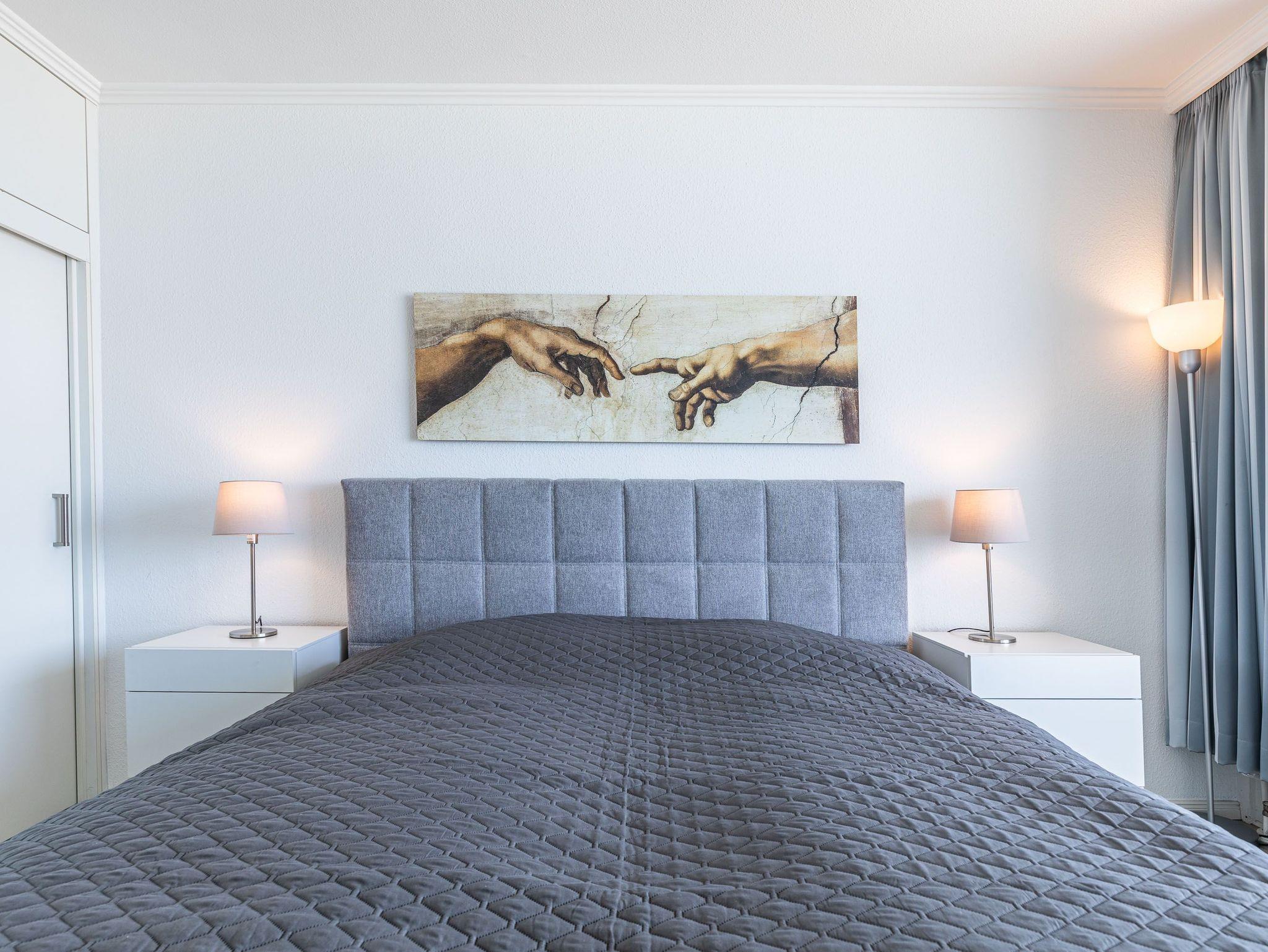 Dieses exzellente, hell eingerichtete Appartement gehört zur absoluten Spitzenklasse. Der erhöhte Podest im Wohnraum ermöglicht Ihnen von der bequemen Sitz-/Schlafcouch (55 cm x 200 cm) sowie von der Essecke einen herrlichen Meerblick. Des Weiteren befindet sich im Wohnraum eine schöne Schrankwand mit einem integrierten Einzelschrankbett (90 cm x 200 cm). Die moderne Einbauküche mit Tresen lässt die Herzen aller Kochfans höher schlagen. Im Schlafzimmer, abgehend vom Flur, befinden sich ein hochwertiges Boxspringbett (2x 90 cm x 200 cm) und ein Einbaukleiderschrank. Das hochmoderne Bad erreichen Sie vom Flur. Beide Wohnräume sind hell, lichtdurchflutet und haben einen Zugang zum großen Eckbalkon. Hier genießen Sie einen uneingeschränkten Panoramablick direkt auf die Ostsee und zur Lübecker Bucht mit lebhaftem Schiffsverkehr.