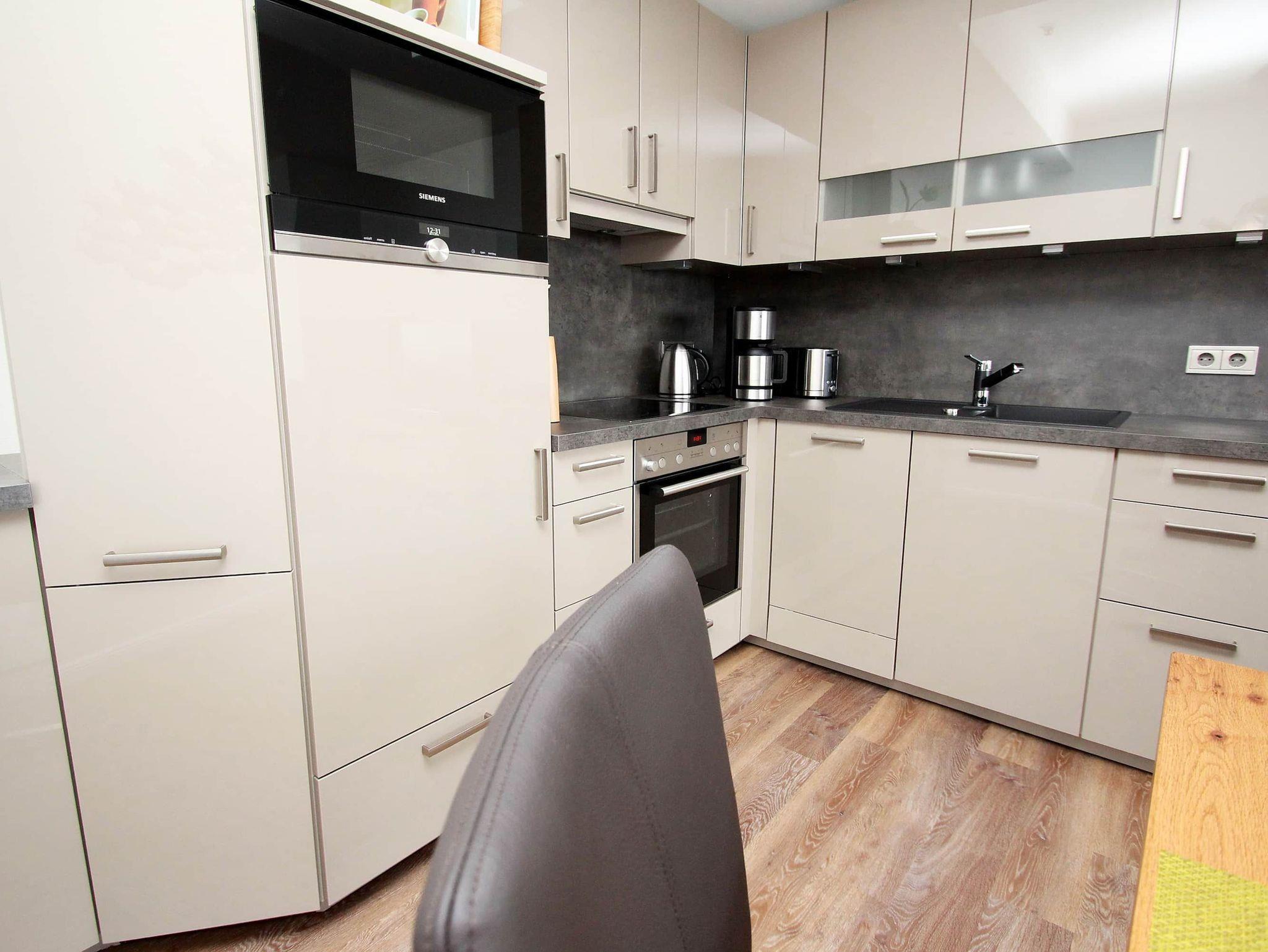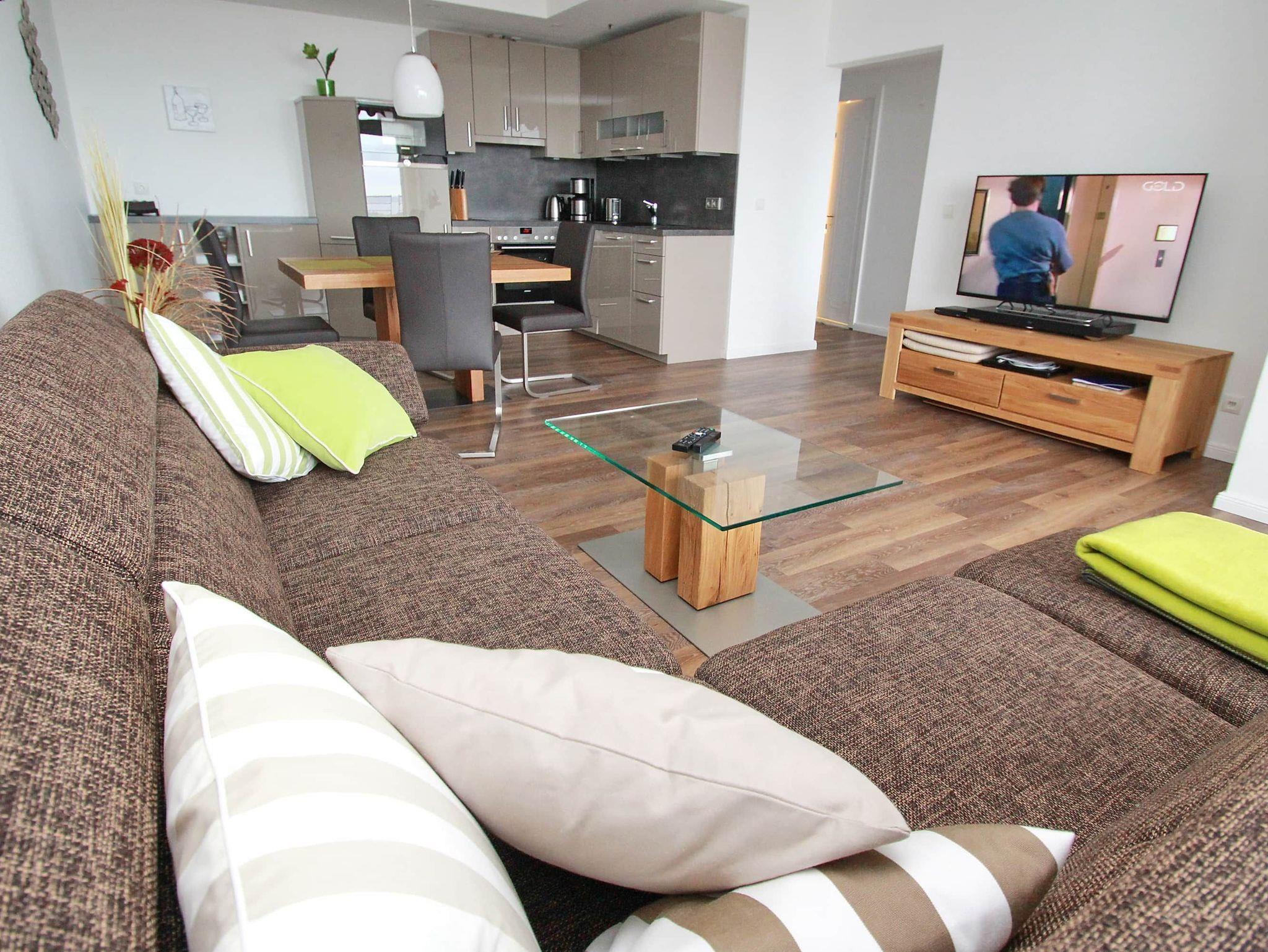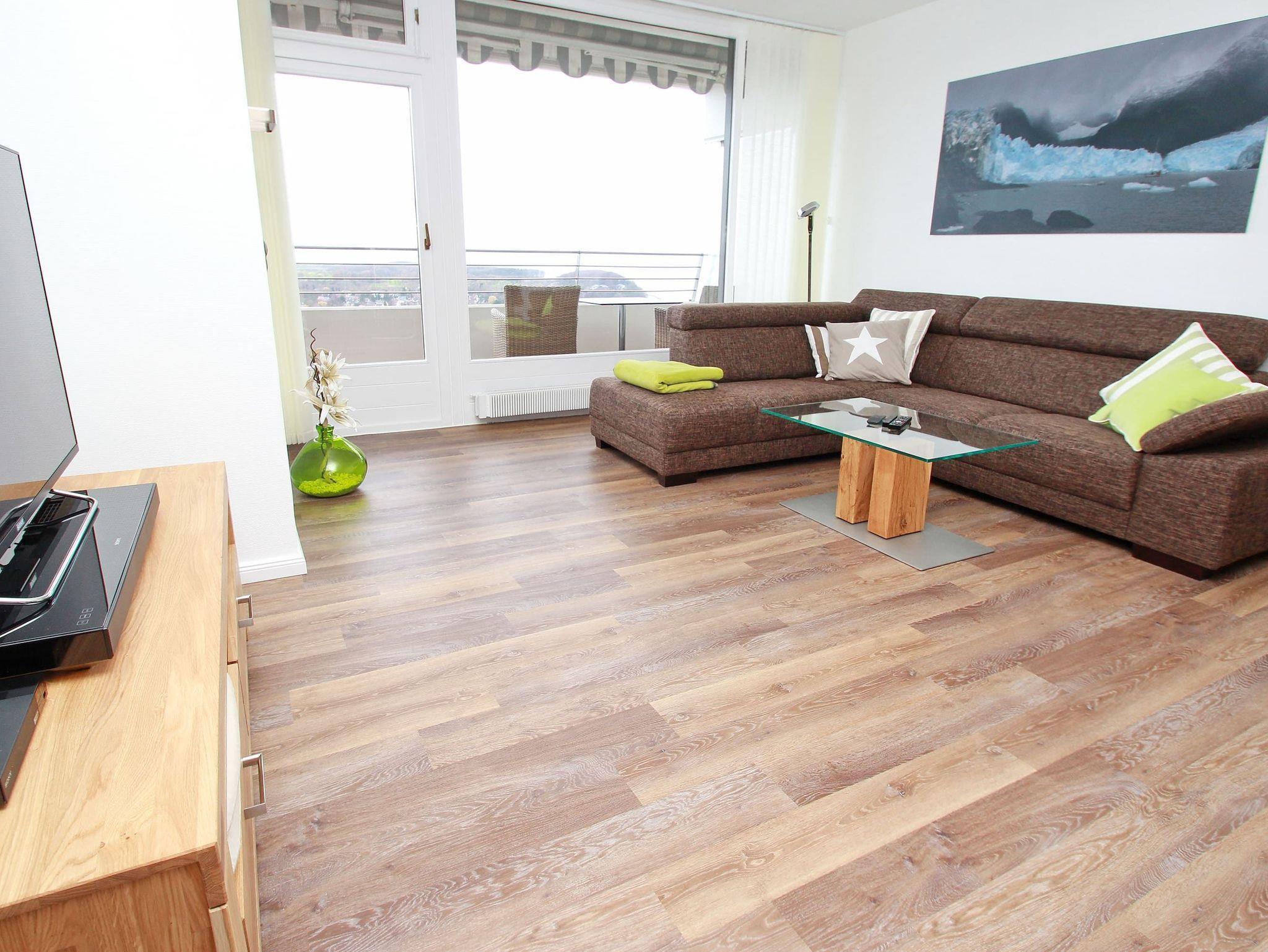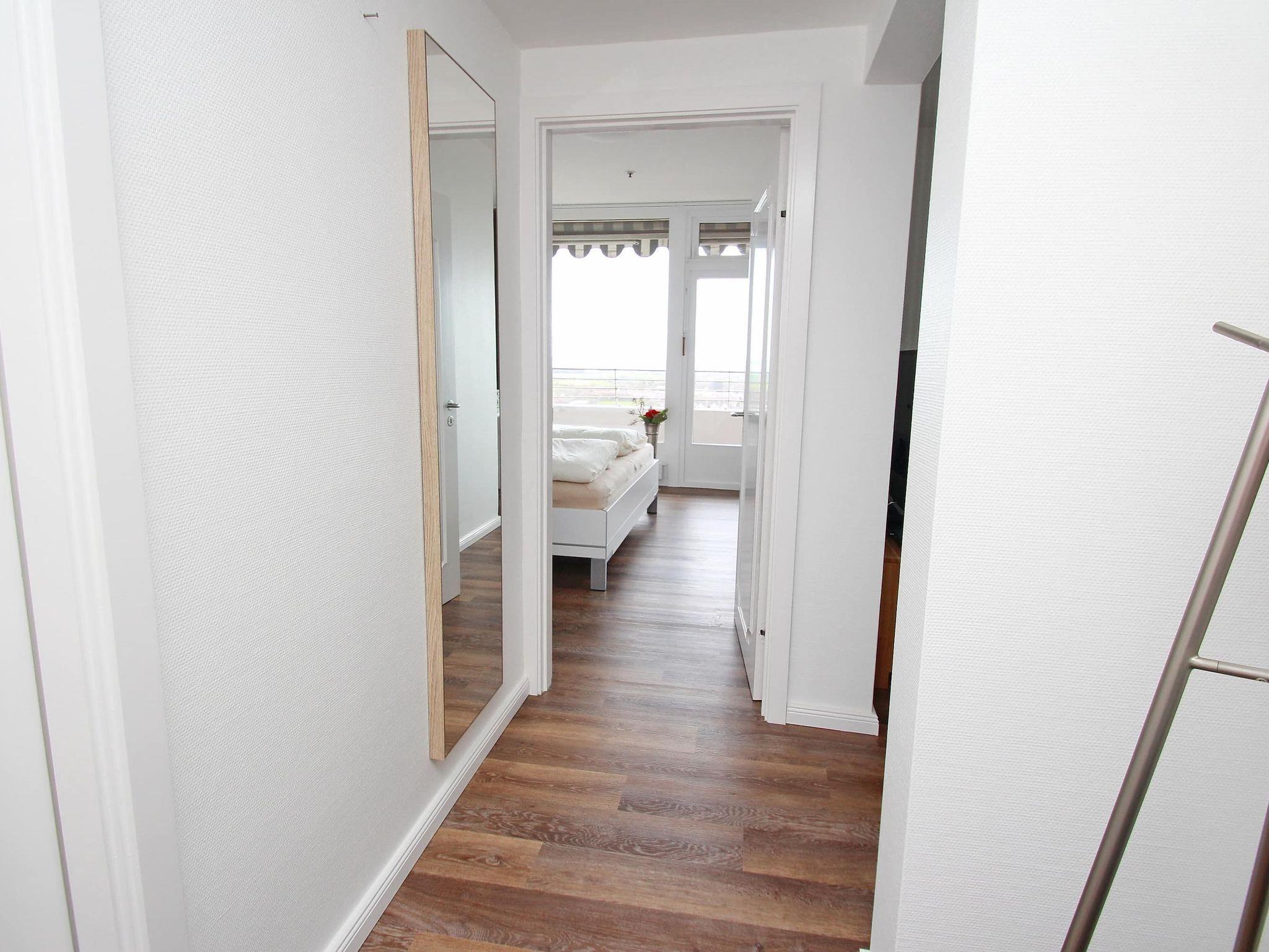 Dieses komfortable Appartement in bevorzugter Lage hat eine geschmackvolle, helle Einrichtung und lädt zu einem tollen Urlaubsaufenthalt ein. Hier können Sie aus nächster Nähe das Strandleben genießen und das beschauliche Spiel der Segelboote im Wind beobachten. Im Wohnraum stehen eine gemütliche Eckcouch mit Tisch und ein schöner Esstisch mit Stühlen neben der modernen Einbauküche. Das Schlafzimmer ist ausgestattet mit einem bequemen Doppelbett (2x 90 cm x 200 cm), einem Schminktisch und einem Einbaukleiderschrank. Das helle Duschbad geht vom Flur ab. Von Wohn- und Schlafraum erreichen sie den großen Balkon. Hier haben Sie einen traumhaften Ausblick auf die Strandpromenade, weit über die Lübecker Bucht bis hin zum Ostsee-Horizont.