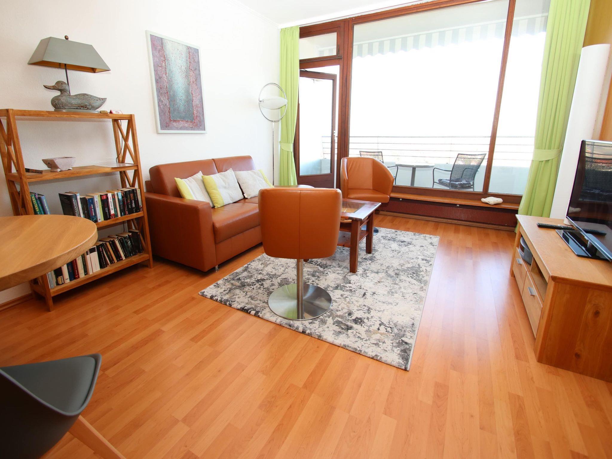 Modern, komfortabel und geschmackvoll ist dieses helle Appartement für einen erholsamen Urlaubsaufenthalt eingerichtet. Im Wohnraum steht eine bequeme Ledercouch mit passenden Sesseln, ein Tisch, eine helle Anrichte und ein schöner Glasvitrinen Schrank. Im großen Schlafzimmer befinden sich ein Doppelbett (2x 90 cm x 200 cm) und eine geräumige Kleiderschrankwand. Eine Sitz-/Schlafcouch (120 cm x 200 cm) in der Wohnraumnische lädt auch zum Ausruhen, Lesen und Relaxen ein. Die vom Flur abgehende Küche und der davor gelegene Essplatz sind durch eine große und überraschend praktische Durchreiche verbunden. Das Bad geht vom Flur ab. Liebevolle Dekorationen, moderne Bilder sowie geschmackvolle Gardinen mit Verdunklungsmöglichkeit sorgen dafür, dass Sie sich wohlfühlen werden. Auch Ihr Vierbeiner ist in diesem Appartement herzlich willkommen. Einen traumhaften Meerblick auf die Lübecker Bucht genießen Sie vom großen Balkon.