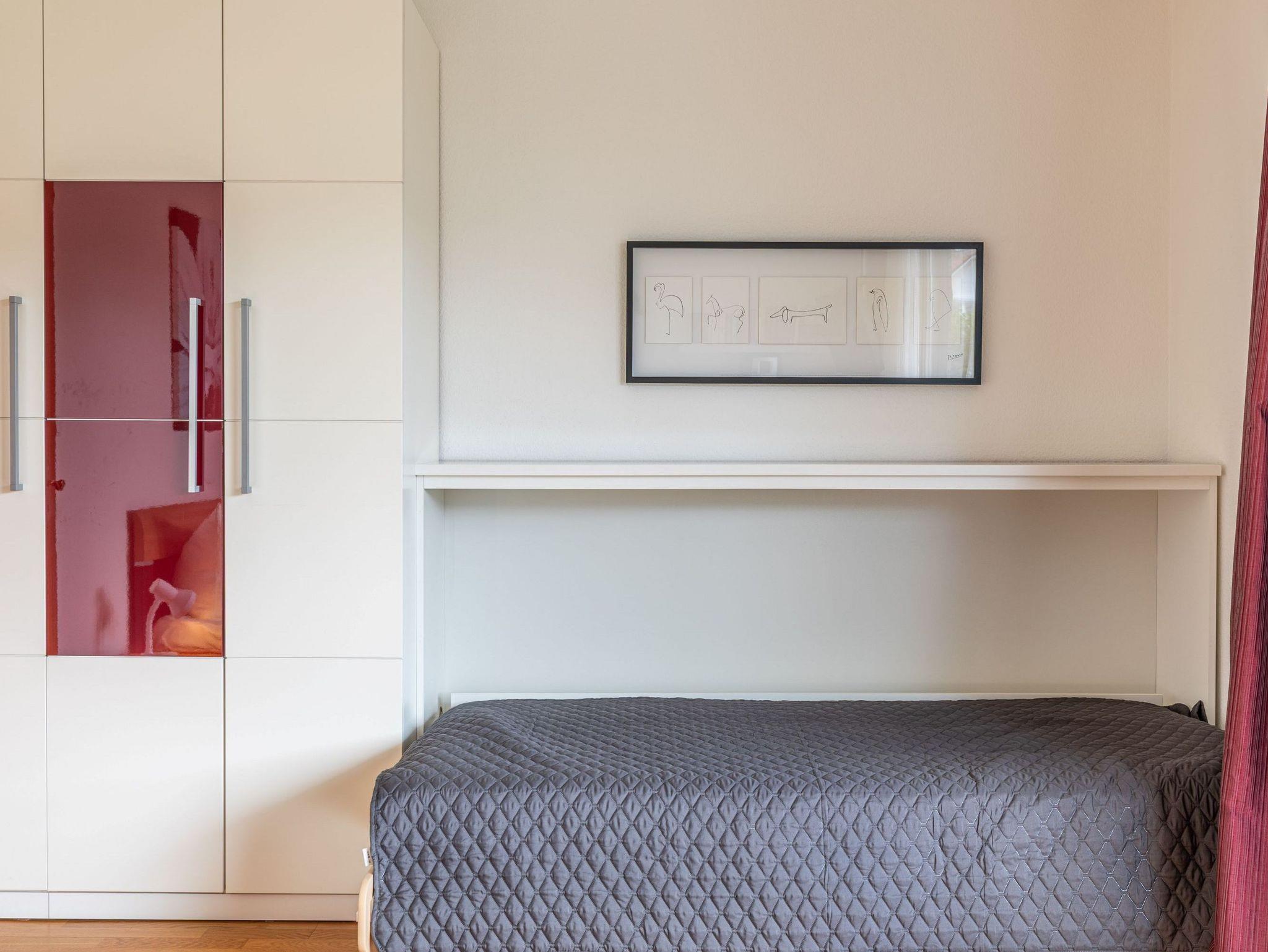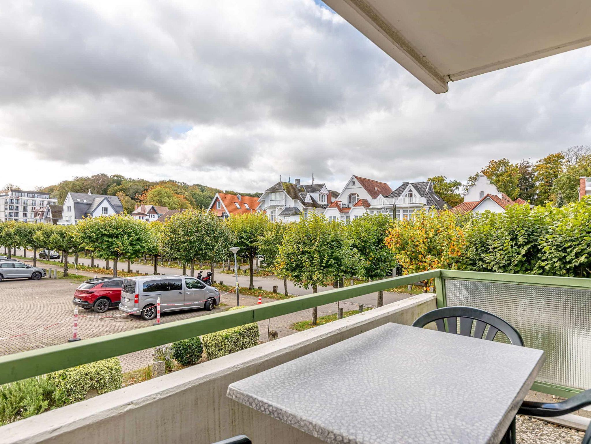 Strandnah und dazu noch sehr geschmackvoll ausgestattet, eignet sich diese neuwertige Wohnung für einen erholsamen Urlaub. Im gemütlichen Wohnzimmer, mit sonnigem Westbalkon zur Kaiserallee, befinden sich eine hochwertige Sitz-/Schlafcouch (155 cm x 180 cm) und zwei Relax Sessel mit Tisch, eine Essecke und eine antike Anrichte. Das vom Wohnraum abgehende, schöne Schlafzimmer mit seitlichem Meerblick vom Südbalkon, ist mit einem bequemen Doppelbett (2x 90 cm x 200 cm), sowie einem Kleiderschrank mit einem zusätzlichen Einzelschrankbett (90 cm x 200 cm), ausgestattet. Das Designerbad und die Küche gehen vom Flur ab. Durch die Süd-West-Lage begleitet Sie die Sonne bis in die Abendstunden.