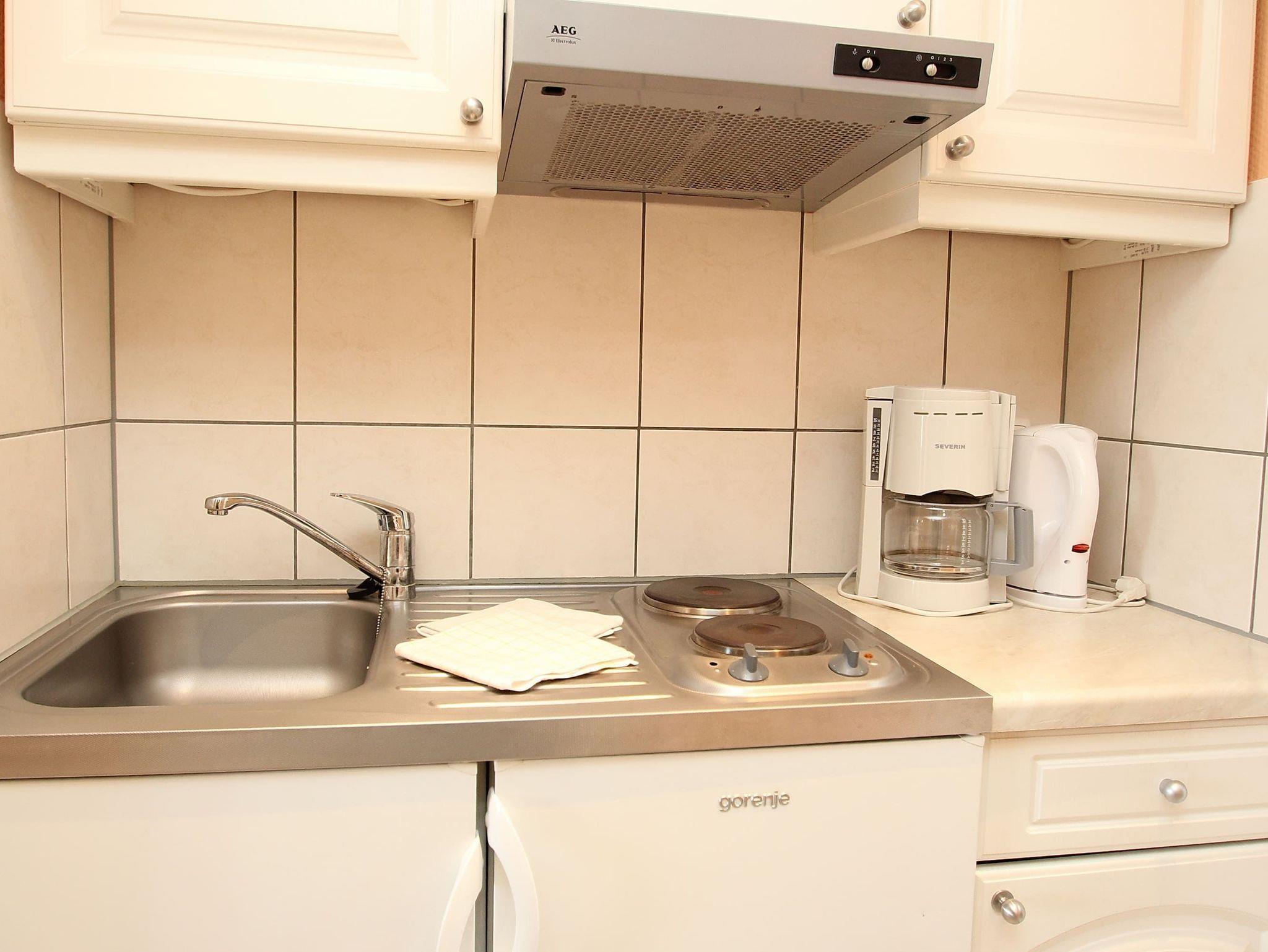 Balkon, Markise, Küchenzeile, Mikrowelle, Duschbad/WC, Fön, TV, Stereoradio mit CD, kostenl. W-Lan, Safe, Aufzug, inkl. Tiefgaragenstellplatz (Einfahrtshöhe: 1,85 m).