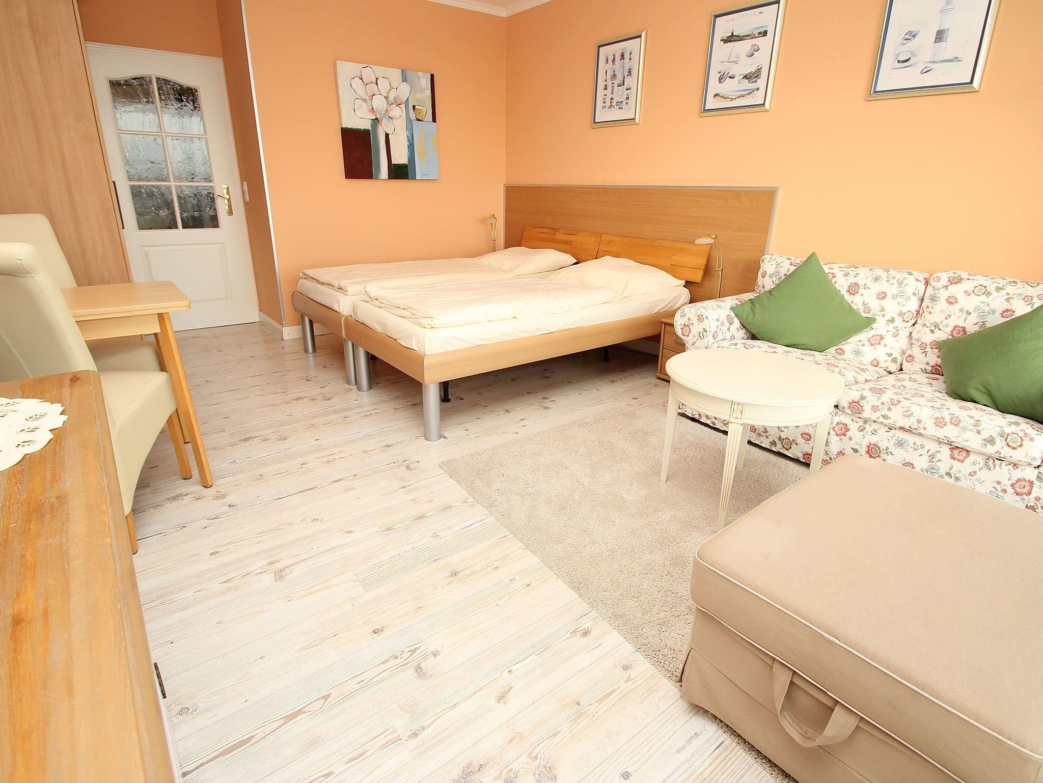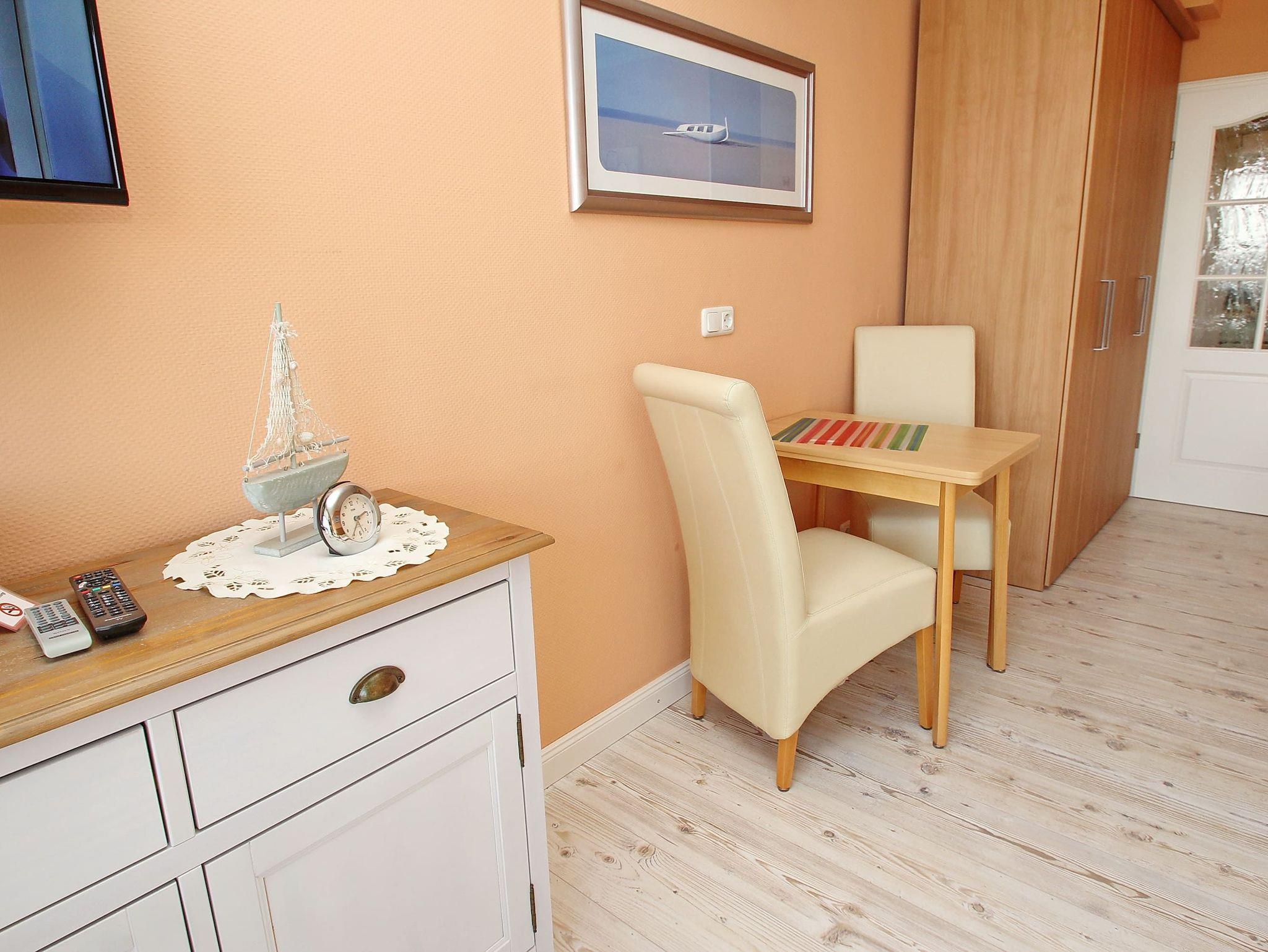 Dieses ansprechende Appartement ist exklusiv und komfortabel eingerichtet und lädt zu einem erholsamen Urlaubsaufenthalt an der Ostsee ein. Frische, warme Farben beleben das Ambiente dieser schönen Wohnung. Im Wohnraum befinden sich zwei komfortable zusammenstehende Einzelbetten (je 90 cm x 200 cm), ein Kleiderschrank und eine bequeme Couch mit Tisch. Gegenüber stehen eine schicke Anrichte und eine Essecke mit Stühlen. Die Küche ist im Flur integriert. Das helle und moderne Duschbad geht vom Flur ab. Vom Balkon genießen Sie einen traumhaften Blick auf die Mecklenburger Bucht, die Pötenitzer Wiek und auf die Trave mit ein- und ausfahrendem Schiffsverkehr.
