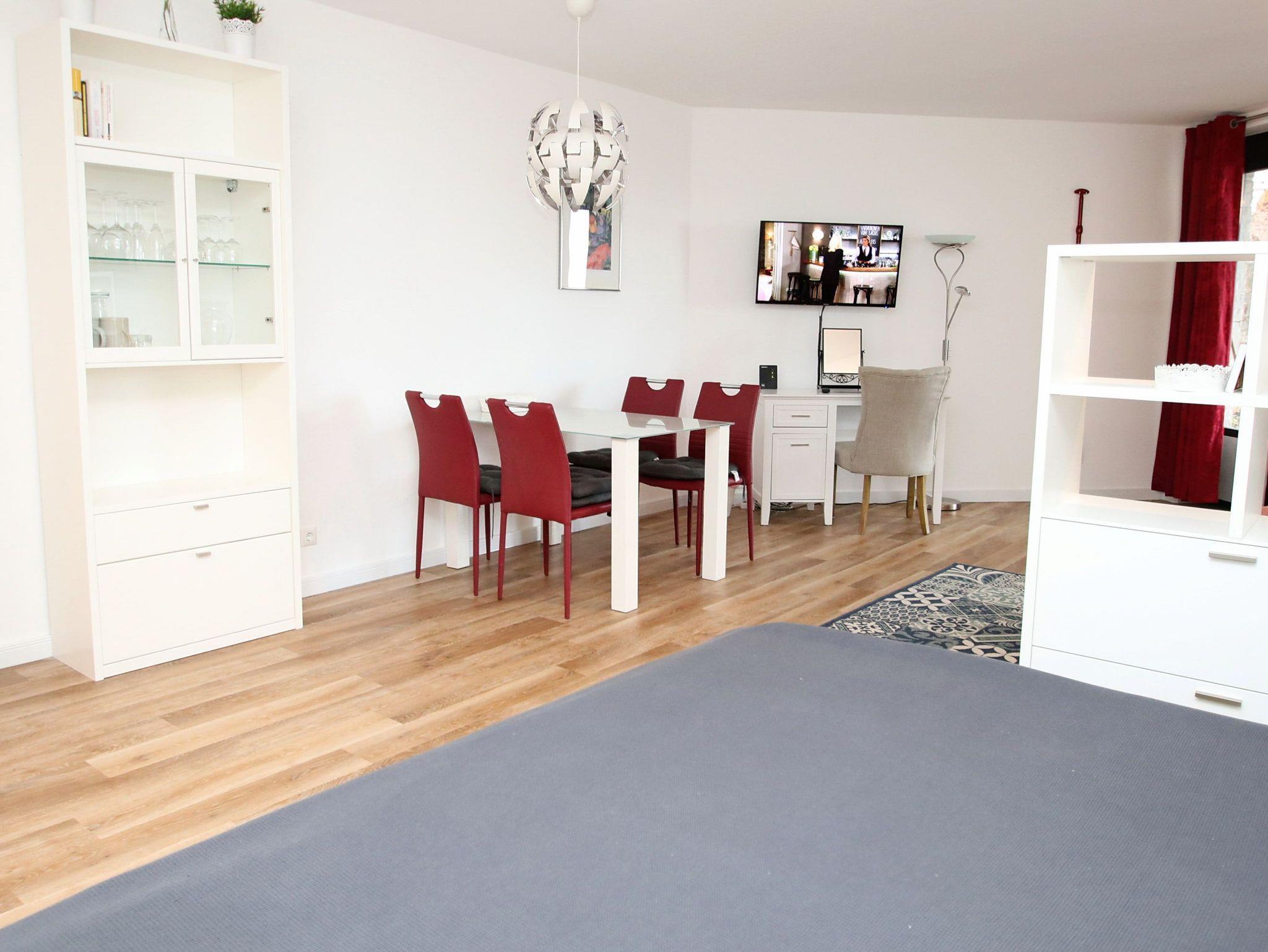 1-Zimmer-Appartement, Hochparterre, ca. 47 m² mit seitlichem Meerblick.