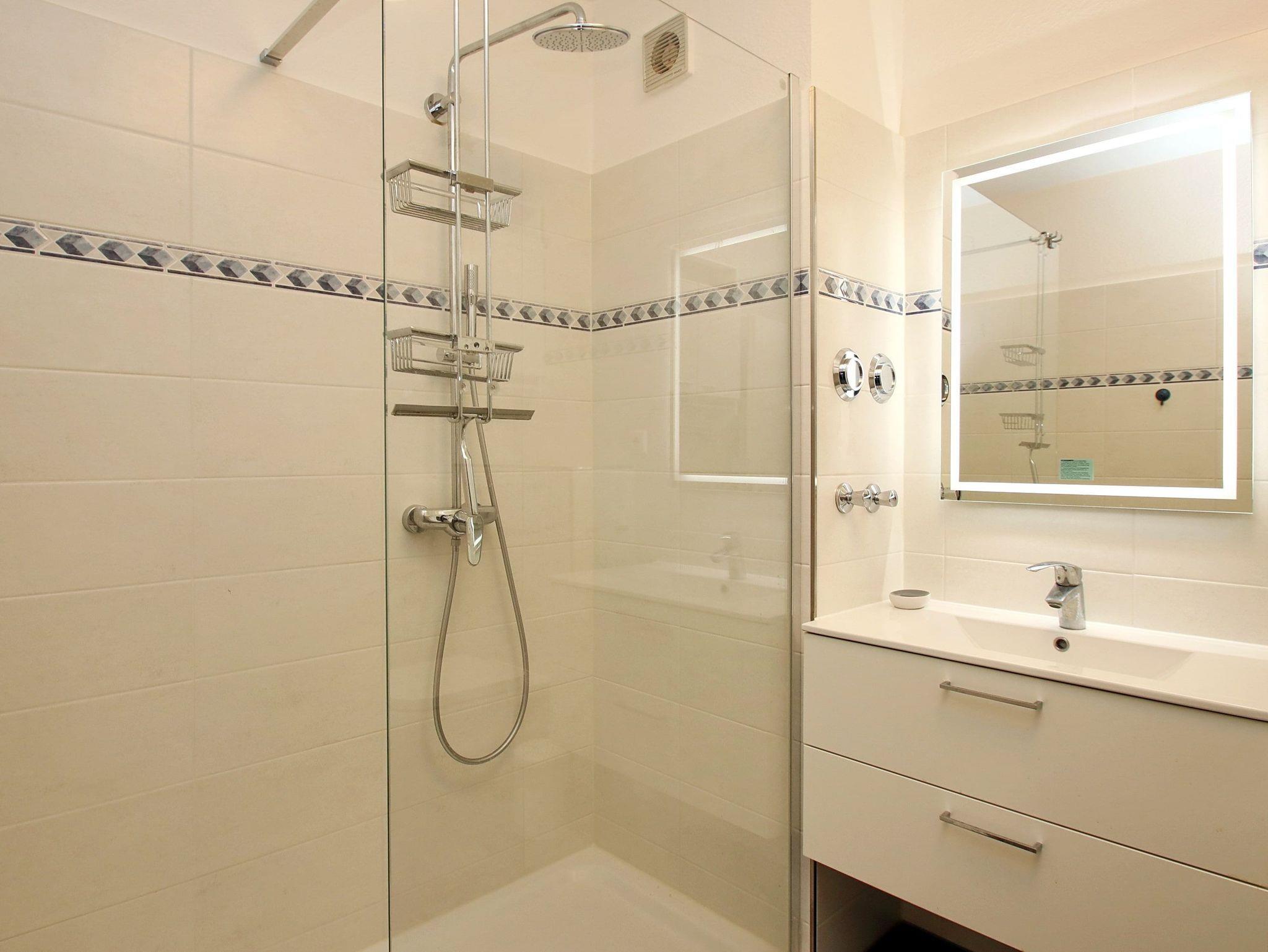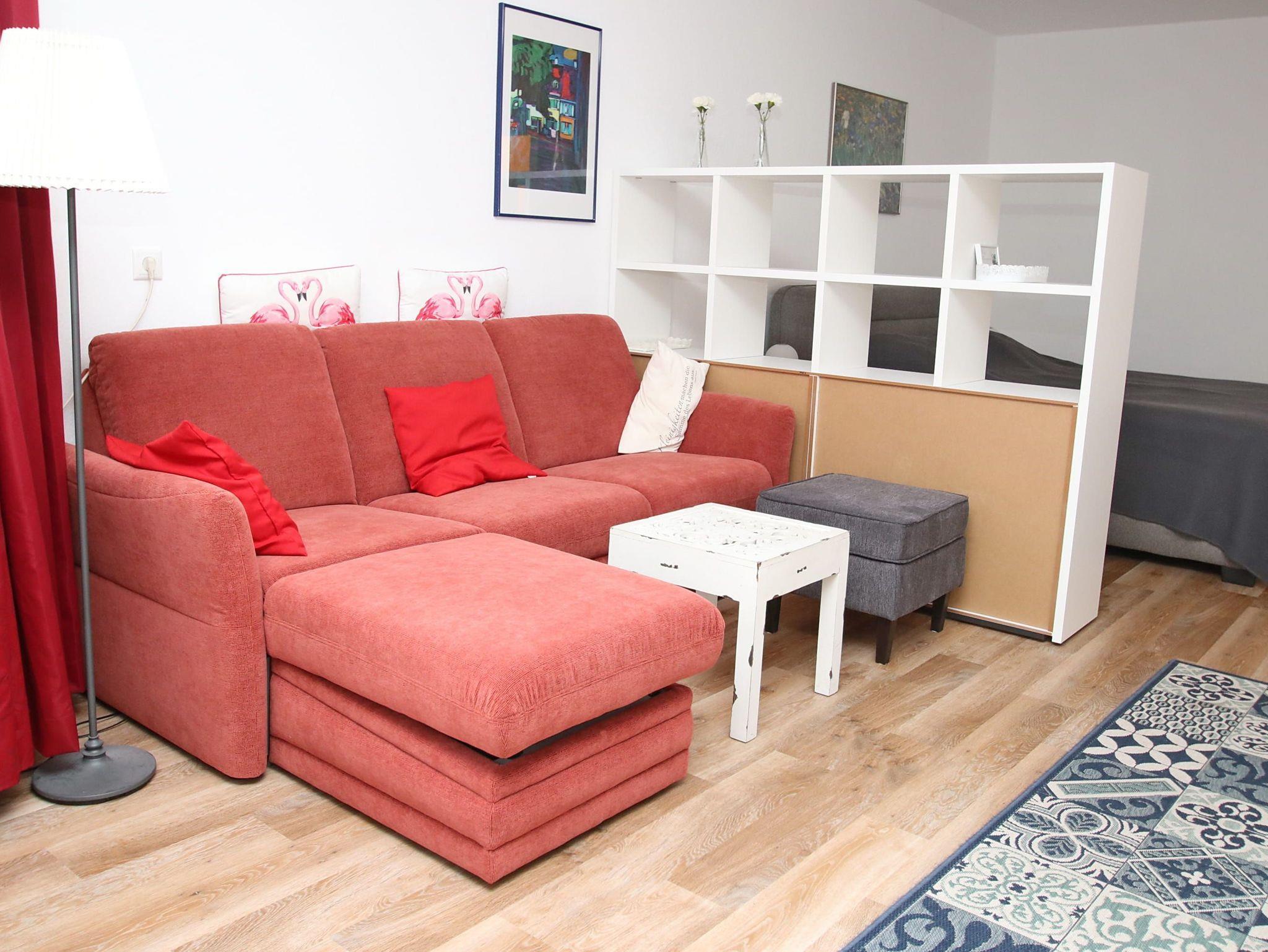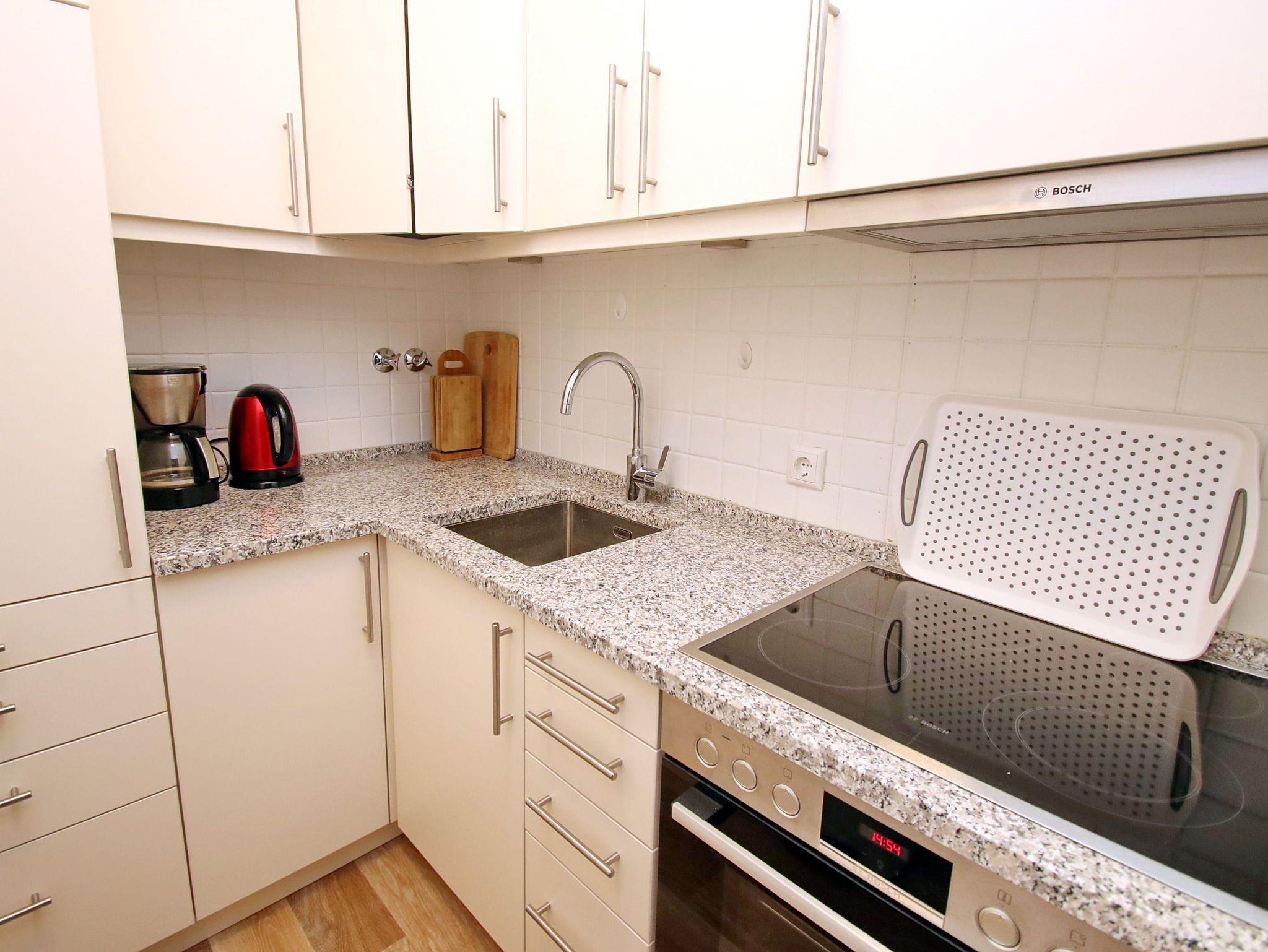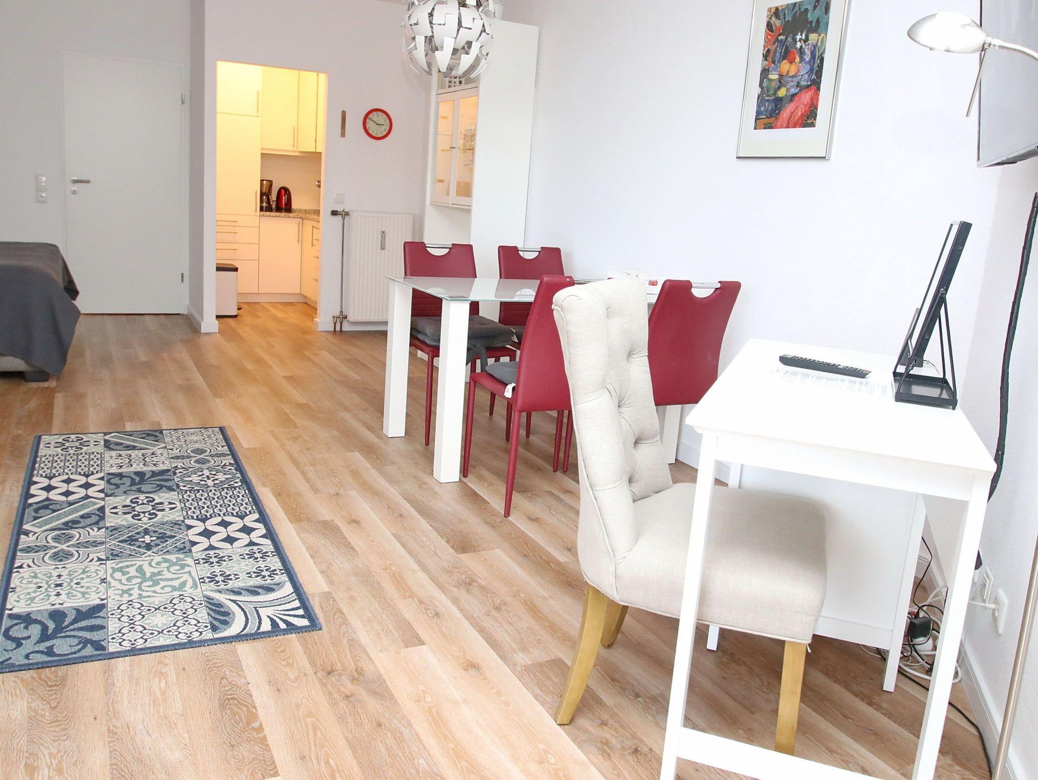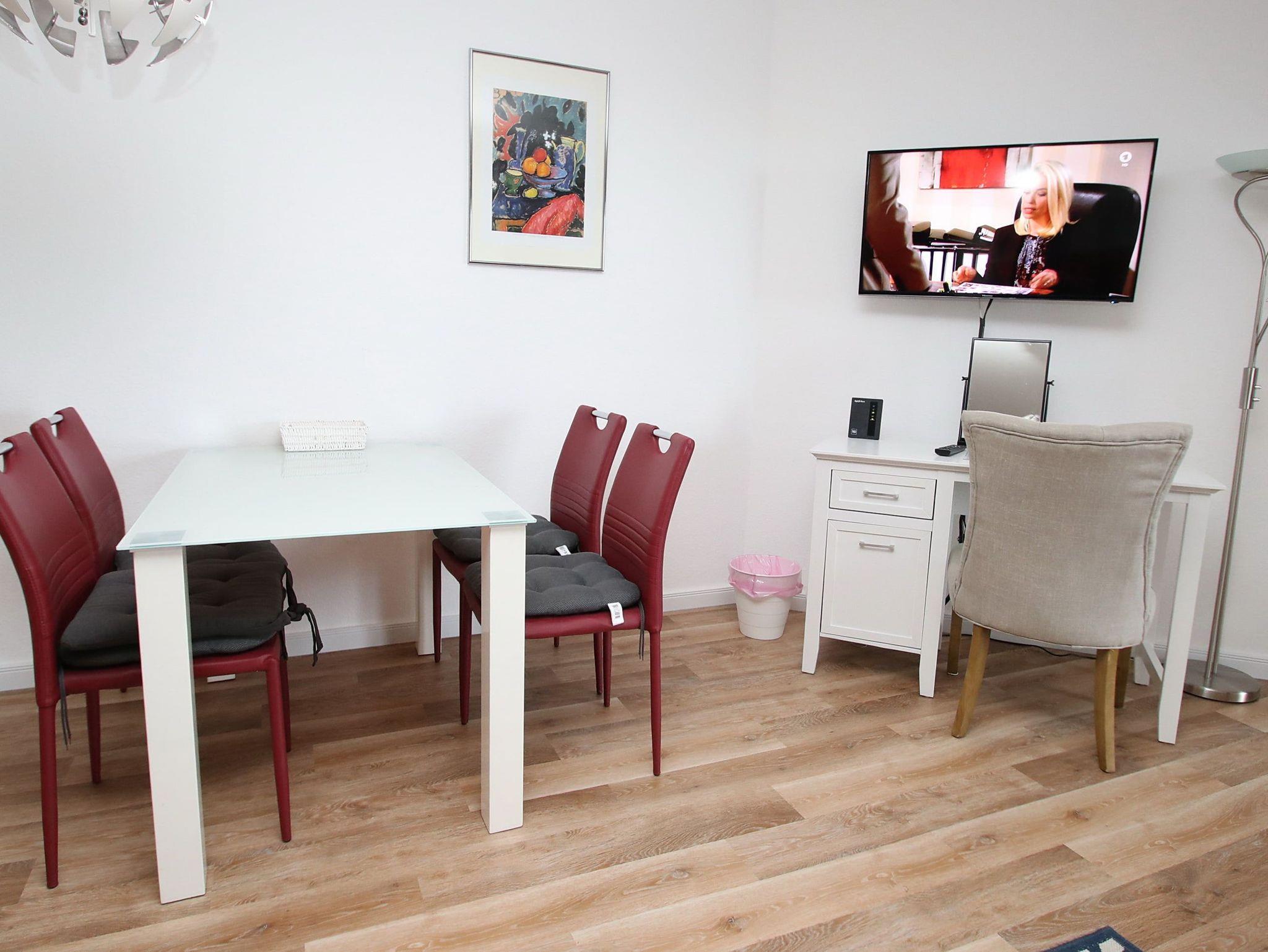 Dieses gemütliche Komfort-Appartement lädt zum Wohlfühlen an der Ostsee ein und vermittelt mit der bevorzugten und strandnahen Lage schnell eine vertraute Atmosphäre. Beim Eintreten in die Wohnung gelangen Sie in den kleinen Flur, von welchem rechts das helle Bad mit seiner modernen und geräumigen Duschkabine abgeht. Geradeaus im Wohnraum befindet sich ein bequemes Boxspringbett (160 cm x 200 cm) sowie eine schöne Essecke direkt neben der Küche. Des Weiteren befinden sich dort eine gemütliche Couch mit Récamiere und ein Einbauschrank im Eingangsbereich. Die Terrasse mit einem seitlichen Blick auf die Ostsee lädt zu jeder Jahreszeit zum Verweilen an der frischen Meeresluft ein.