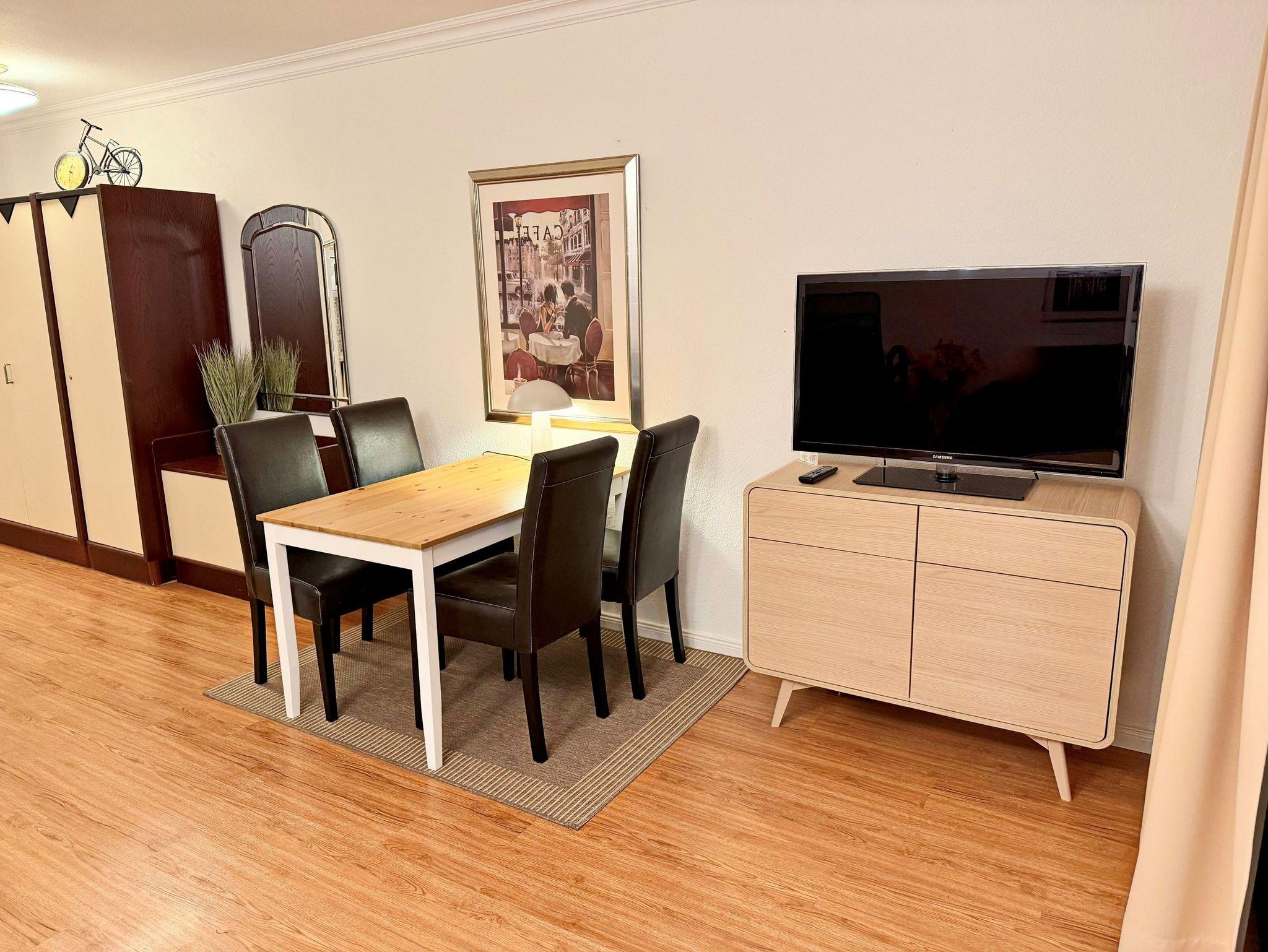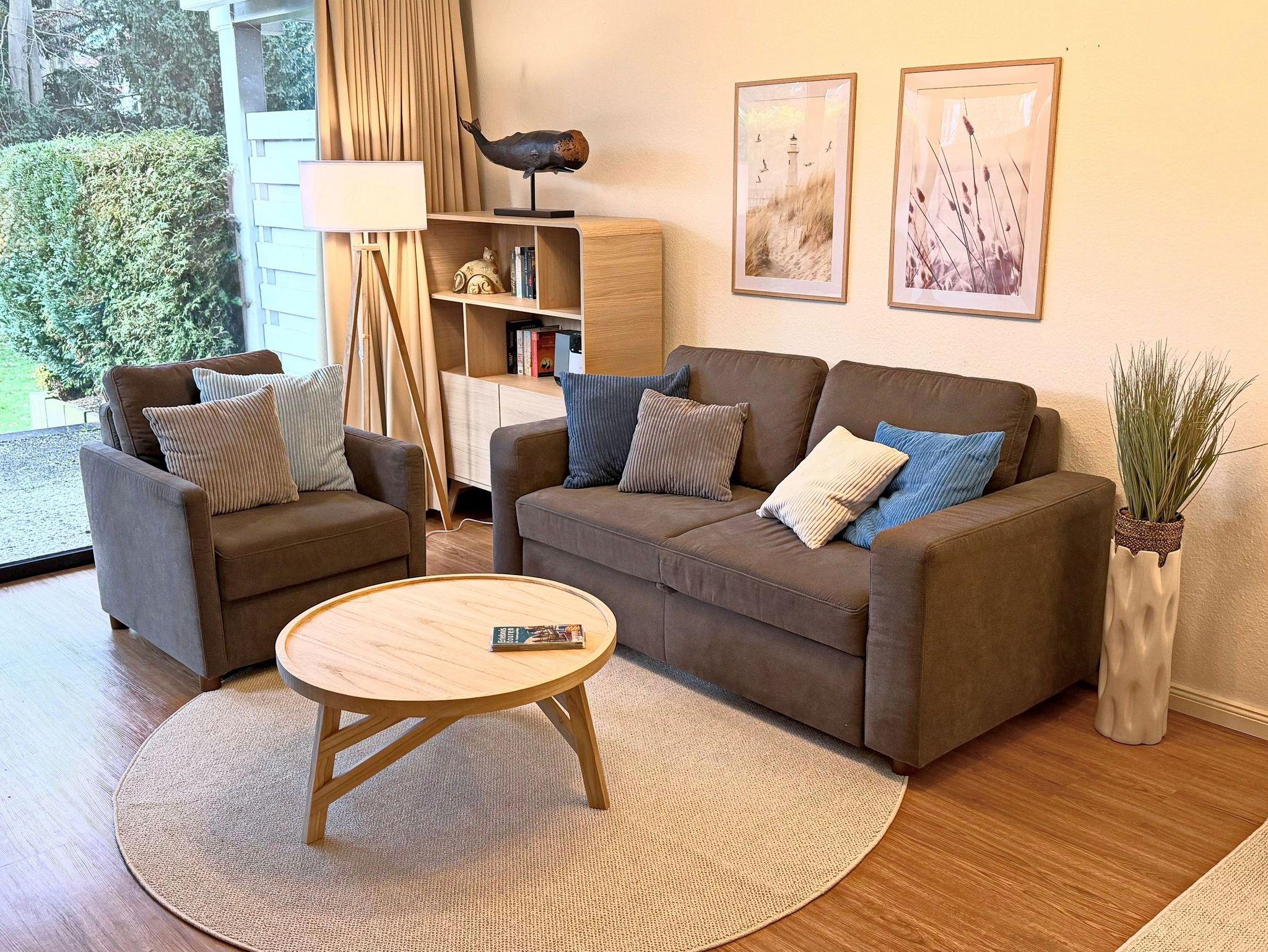 Dieses stilvolle und angenehm ruhige Appartement liegt in bevorzugter Lage der renommierten Wohnanlage Miramare, nur etwa 60 Meter vom Sandstrand entfernt. Bereits der freundliche Eingangsbereich mit großzügigem Einbauschrank vermittelt ein Gefühl von Komfort und Ordnung. Von hier aus erreichen Sie das helle, modern ausgestattete Badezimmer. Der großzügige Wohn- und Schlafbereich präsentiert sich geschmackvoll eingerichtet und bietet ein komfortables Doppelbett (2 × 90 cm × 200 cm), eine besonders bequeme Schlafcouch (140 cm × 210 cm) mit Tisch, eine gemütliche Essecke sowie einen geräumigen Kleiderschrank. Die separate Küche ist vollständig ausgestattet und erfüllt alle Ansprüche an Funktionalität und Komfort. Die gesamte Wohnung besticht durch ihre warme, einladende Atmosphäre und eine harmonische Raumgestaltung. Ein besonderes Highlight ist die nach Südwesten ausgerichtete Terrasse, von der aus Sie den Blick in die gepflegte Gartenanlage sowie auf den angrenzenden Godewindpark genießen können ideal für entspannte Stunden im Freien.