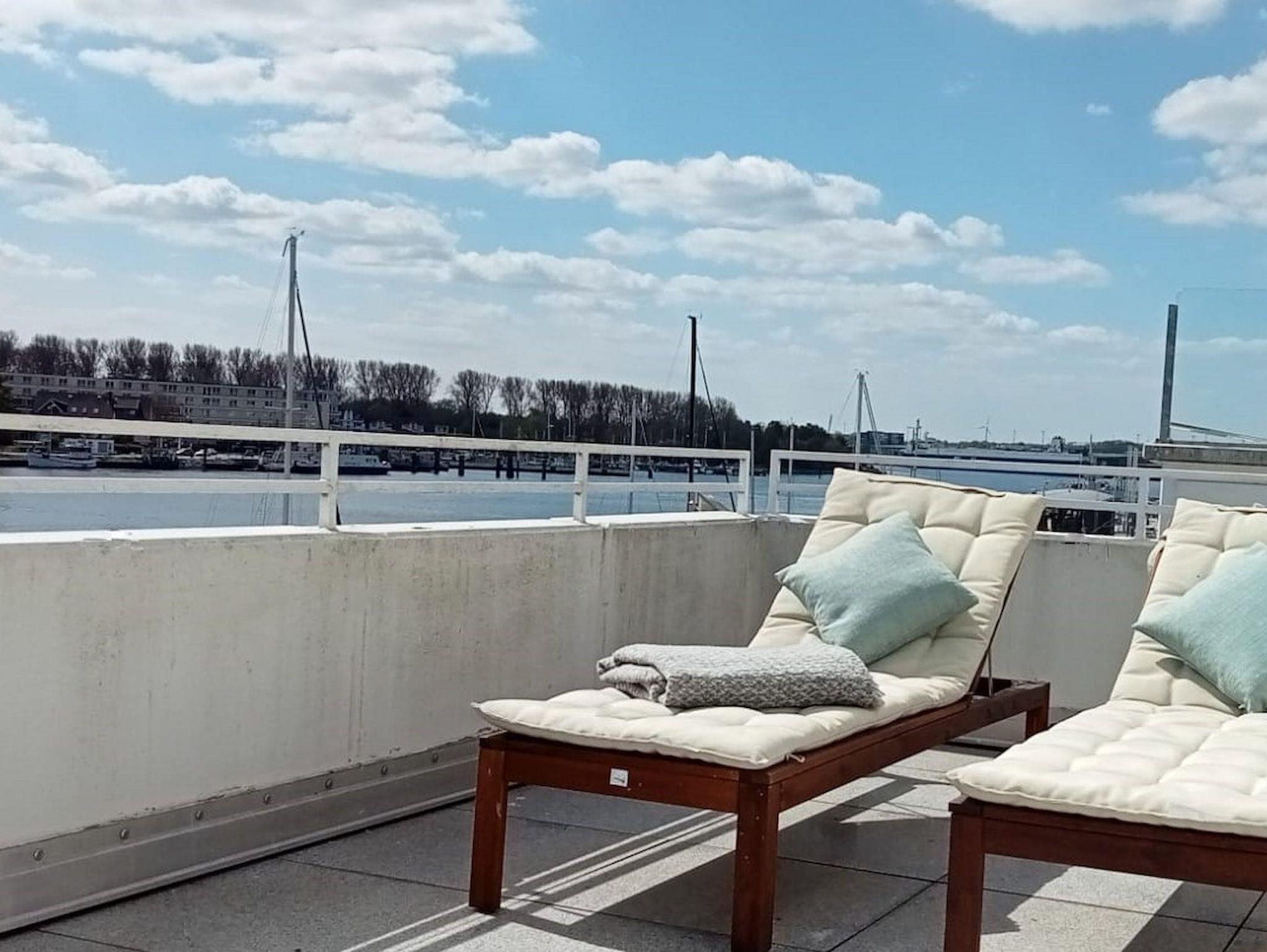 Sonniger Balkon von 20 m² mit Strandkorb, Markisen, Küche, Geschirrspüler, Mikrowelle, Duschvollbad/WC, Fön, TV, Stereoradio mit CD, kostenl. W-Lan, inkl. Tiefgaragenstellplatz im Nachbarhaus (Einfahrtshöhe: 1,80 m).