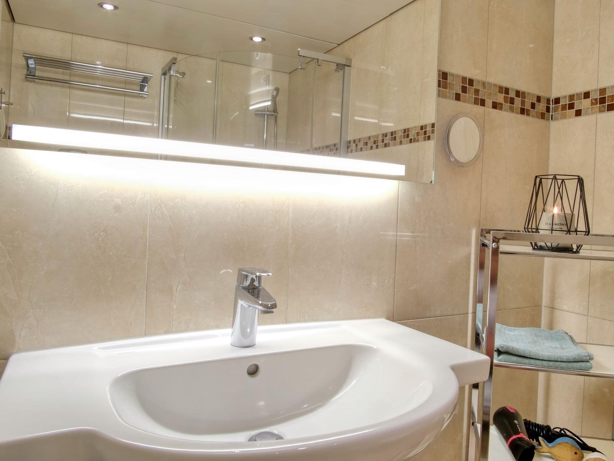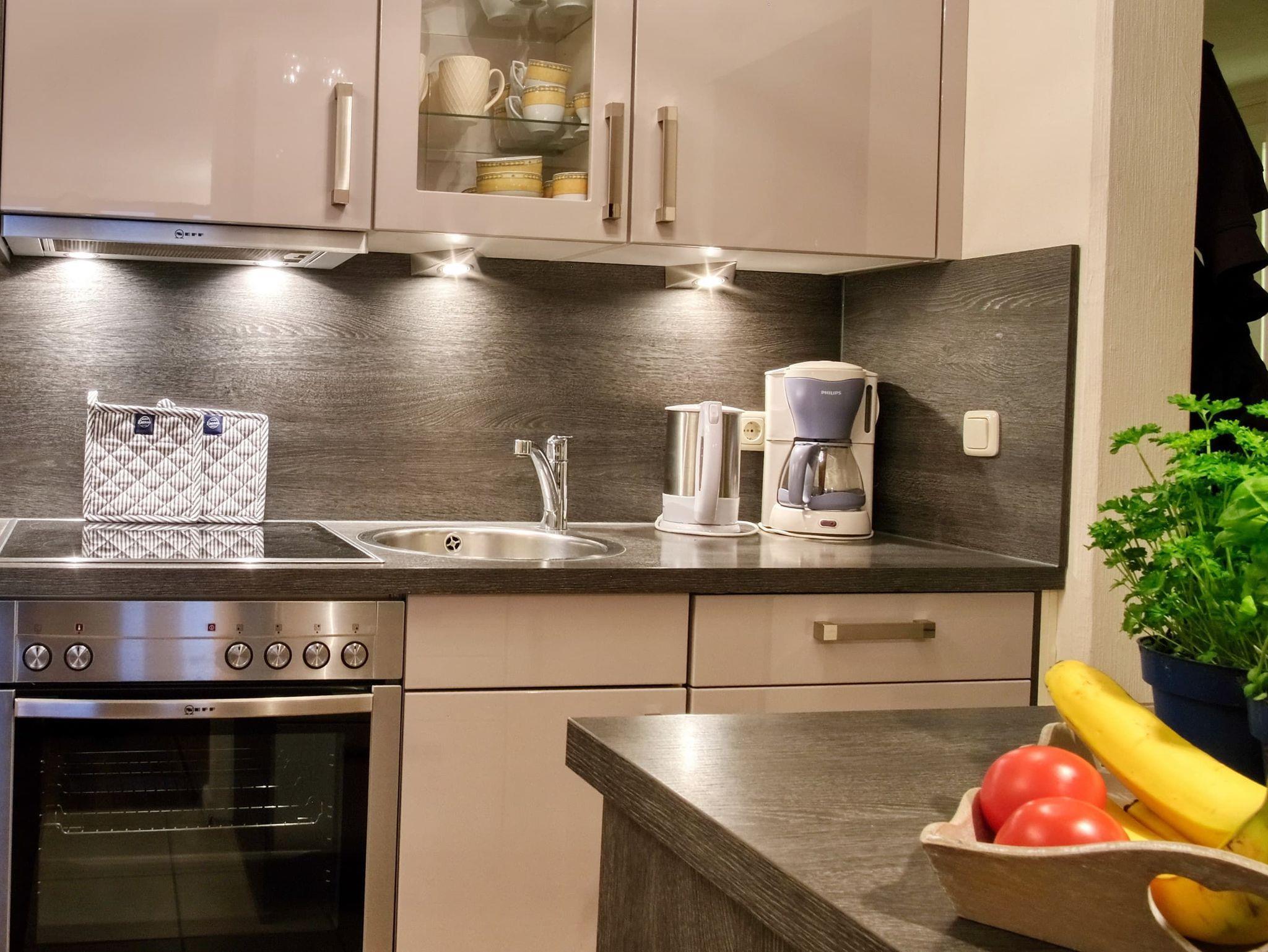 Balkon, Küche, Geschirrspüler, Mikrowelle, Duschbad/WC, Fön, 2x TV, Stereoradio mit CD, kostenl. W-Lan, Aufzug, inkl. Tiefgaragenstellplatz (Einfahrtshöhe: 1,85 m).