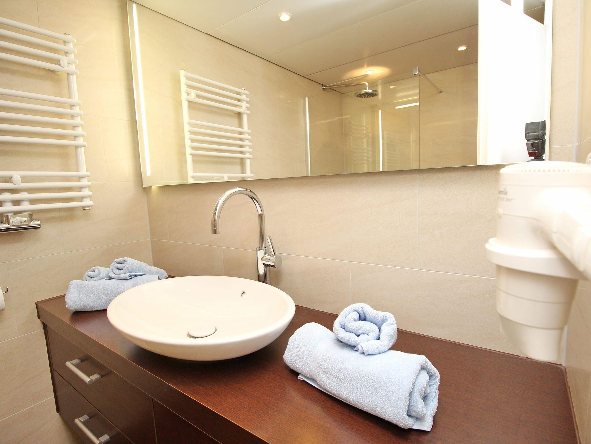 Wellnessangebote wie Schwimmbad, Sauna, Beauty sowie Restaurants und Cafés sind im Haus.