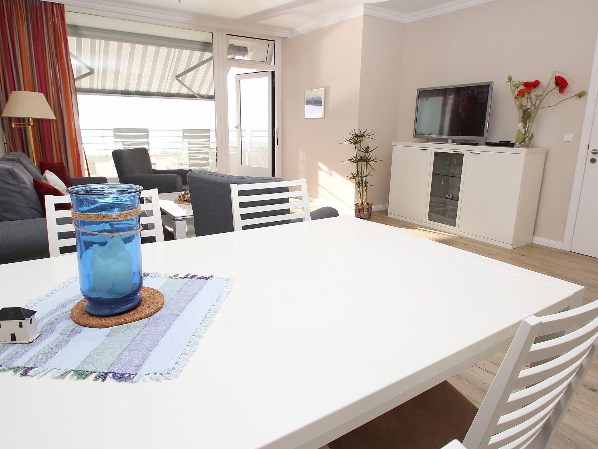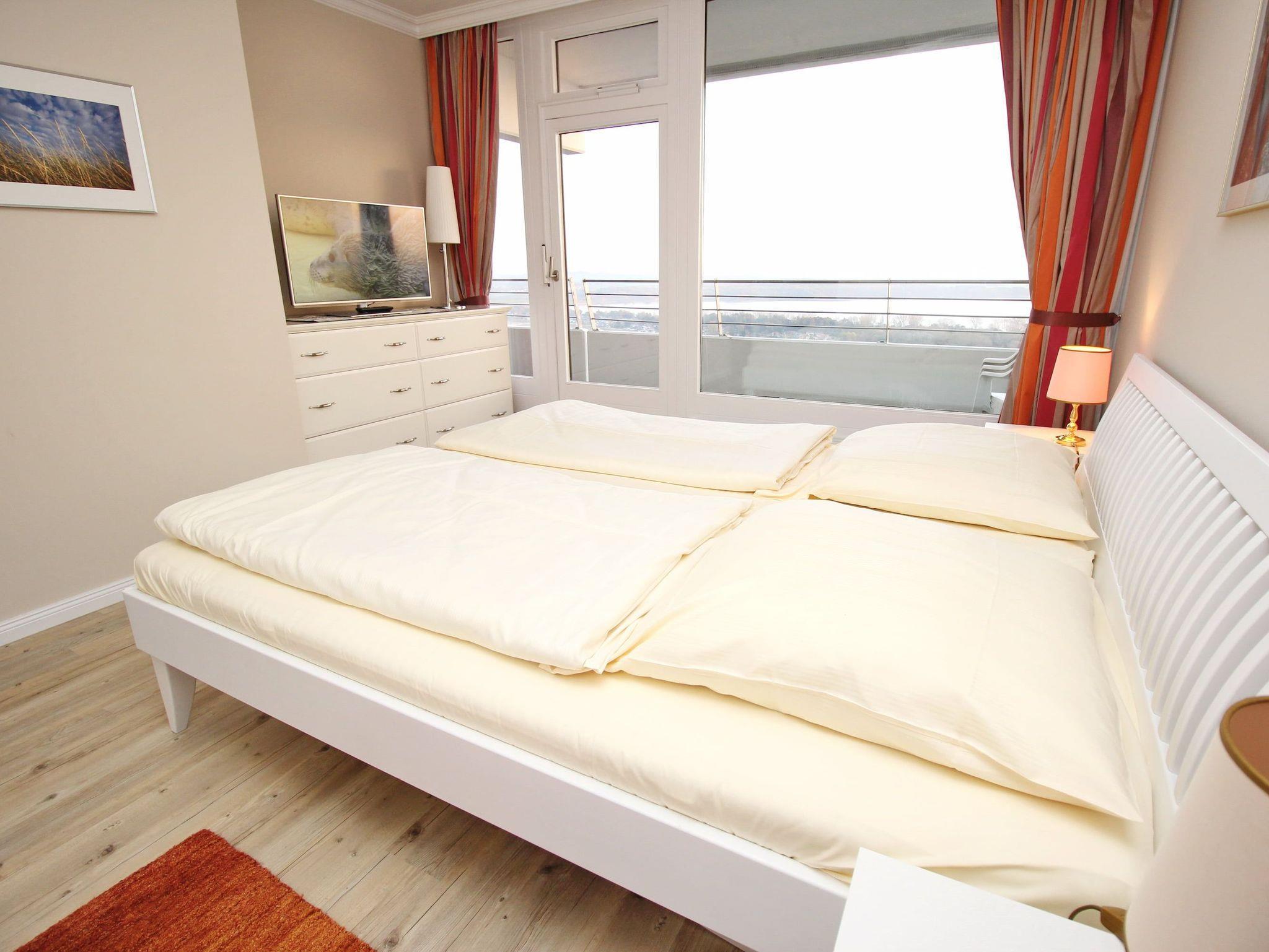 Exklusiv über den Wolken und direkt an der Trave wohnen Sie in diesem komfortablen Appartement. Die Wohnung bietet jeglichen Komfort und Bequemlichkeit für einen erholsamen Urlaub an der Ostsee. Hochwertig und geschmackvoll ist die Einrichtung für Ihren Aufenthalt zum Wohlfühlen ausgewählt. Im Wohnzimmer stehen eine Sitz-/Schlafcouch (160 cm x 200 cm), zwei Sessel, eine Anrichte sowie eine Essecke neben der offenen Einbauküche. Im Schlafzimmer befinden sich ein Doppelbett (2x 90 cm x 200 cm), ein Einbauschrank und eine Kommode. Das moderne Bad mit vielen Extras ist einzigartig. Vom Wohn- und Schlafzimmer haben Sie einen Zugang zum Balkon. Hier genießen Sie einen traumhaften Ausblick zur Trave mit der Passat, zur Lübecker Bucht und zur Hafeneinfahrt mit lebhaftem Schiffsverkehr.