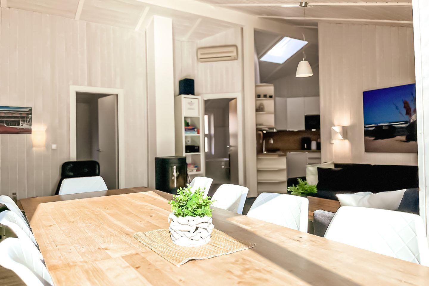 Das Ferienhaus 1 mit Sauna und Whirlpool liegt in einer ruhigen Lage in der Nähe vom Dünenweg. Es ist ca. 121 m² groß und ist für bis zu 12 Personen zugelassen. Hierbei handelt es sich um eine Ferienunterkunft über das gesamte Erdgeschoss verteilt mit einem Hauseingang. Großzügig gestaltet sind die 2 Sonnenterrassen, die teilweise überdacht sind. Die Unterkunft wurde kürzlich renoviert! Hunde sind auch willkommen.