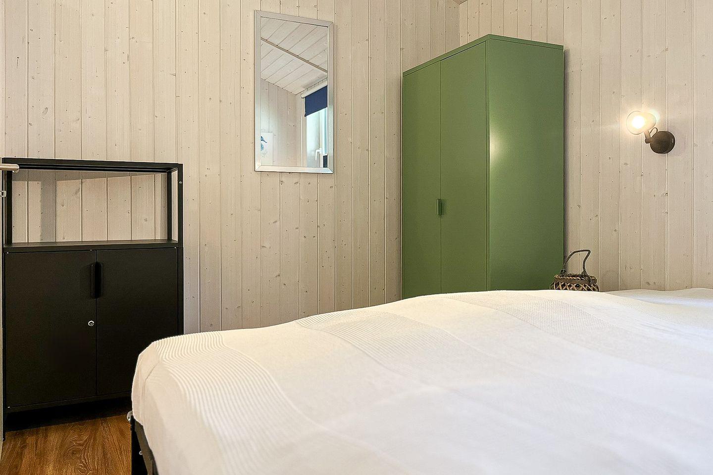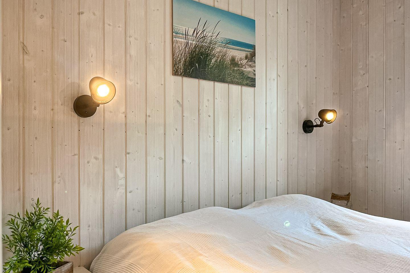 Das Haus bietet zwei Schlafzimmer, welche jeweils mit einem Doppelbett ausgestattet sind. Durch Laminatböden wirken die Räume freundlich und pflegeleicht.