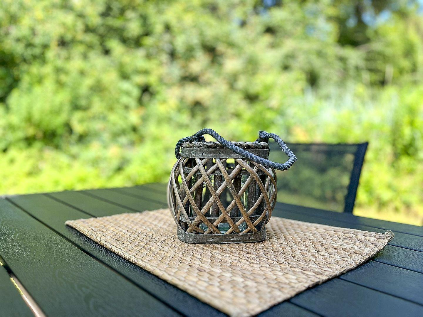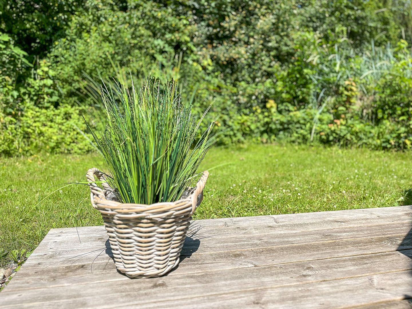 Die private Terrasse mit Gartenmöbeln, Sonnenschirm und Blick ins Grüne lädt zum Frühstück in der Morgensonne oder zum entspannten Grillabend ein – ein Holzkohlegrill steht Dir zur Verfügung! Für gemütliche Stunden an kühleren Tagen sorgt der Bioethanolofen mit wohliger Wärme.