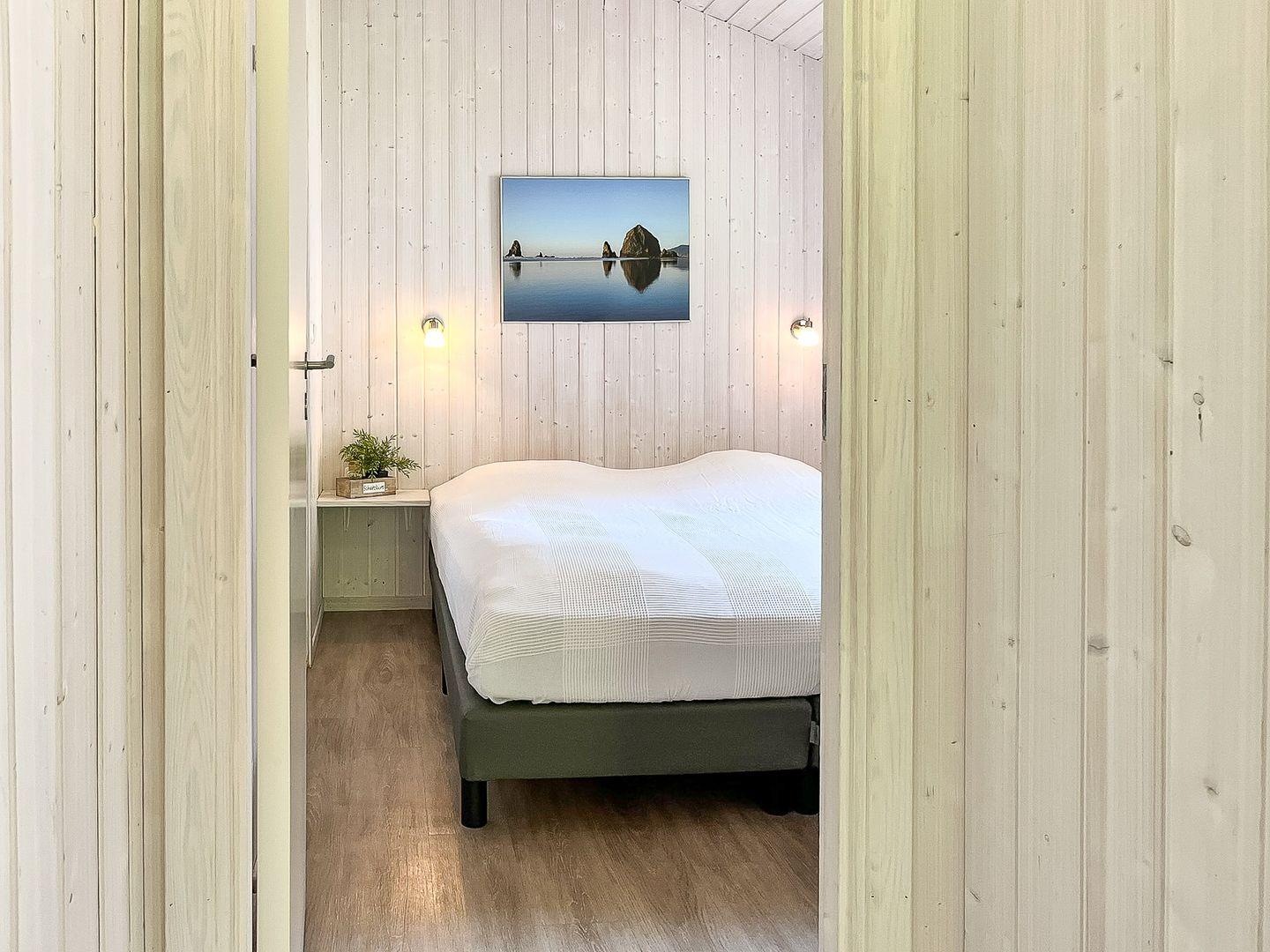 Das Haus verfügt über zwei Schlafzimmer – ideal für bis zu vier Personen. Jedes Zimmer bietet Dir Stauraum für Deine Urlaubssachen und sorgt durch Vinylboden für ein wohnliches Gefühl.