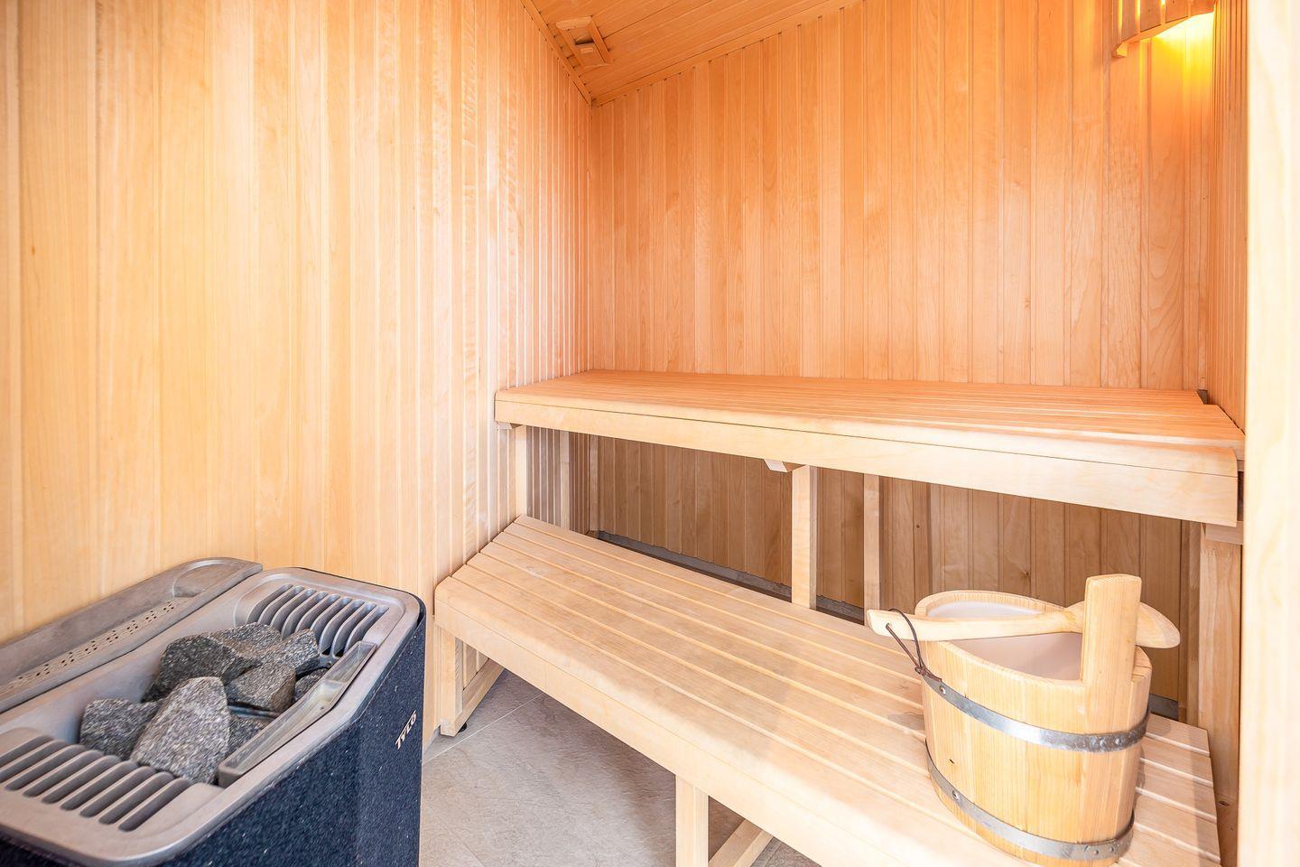 Ein echtes Highlight ist das Badezimmer: Hier hast Du Deine eigene kleine Wellnessoase mit moderner Badewanne mit wohltuender Whirlpool-Funktion, Sauna und einem Dampfbad mit integrierter Doppelregendusche. Perfekt, um nach einem Strandtag zu entspannen.