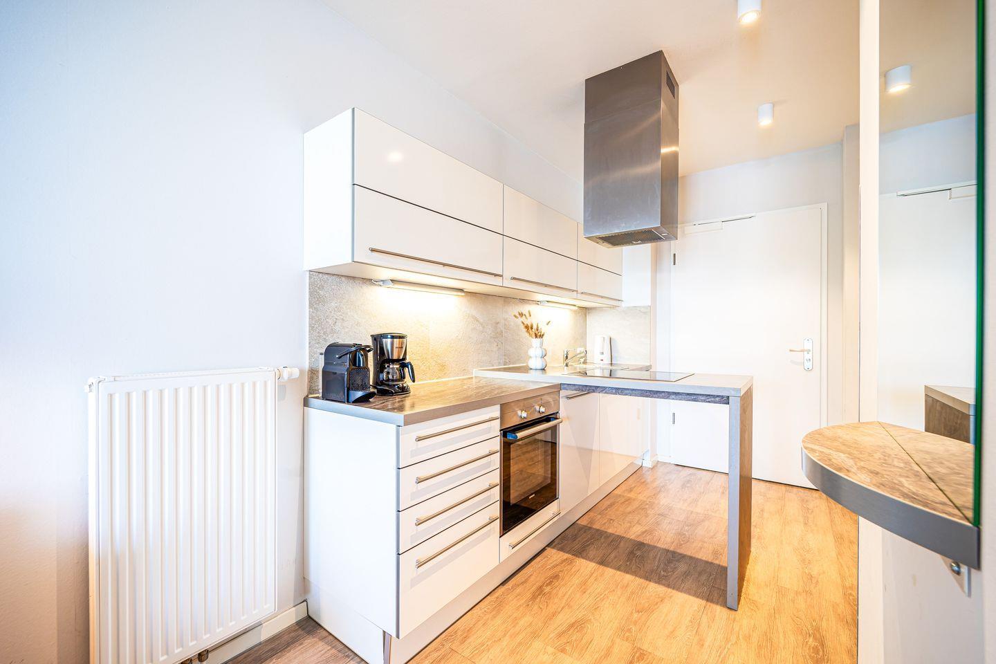 Die offene Küche ist bestens ausgestattet mit 4-Platten-Herd, zusätzlichem Wok-Kochfeld, Backofen, Kühlschrank mit Gefrierfach, Geschirrspüler, Mikrowelle, Toaster, Wasserkocher, Kaffeemaschine und Nespresso-Maschine. Natürlich stehen Dir ausreichend Geschirr, Besteck und Kochutensilien zur Verfügung, sodass Du Dich ganz nach Deinen Wünschen selbst versorgen kannst.