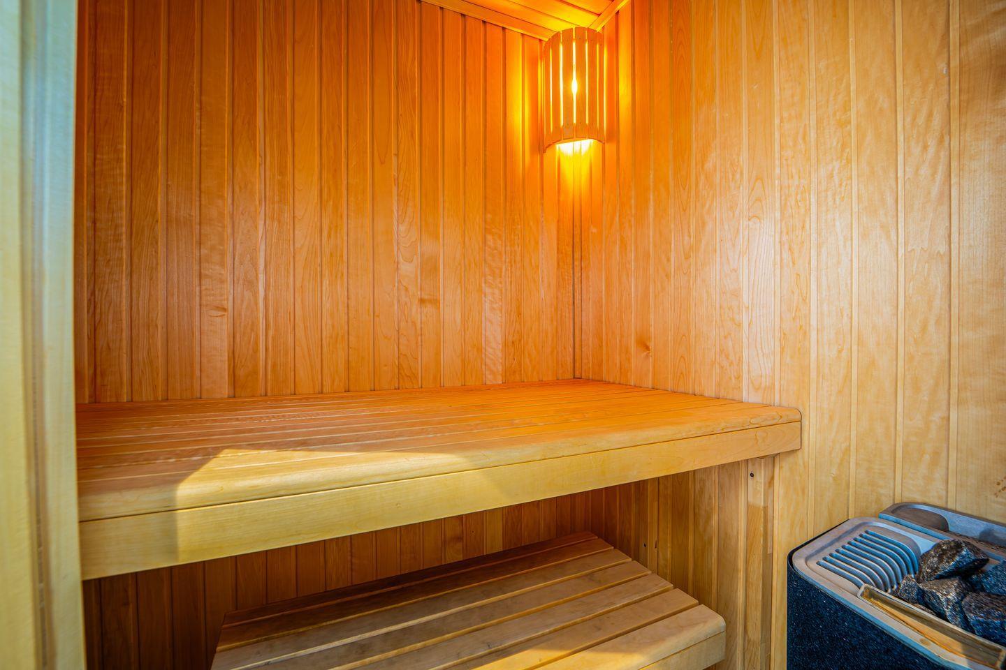 Das zweite Badezimmer ist mit bodengleicher Dusche, WC, Föhn und einer Sauna ausgestattet – perfekt zum Entspannen nach einem Tag am Strand.