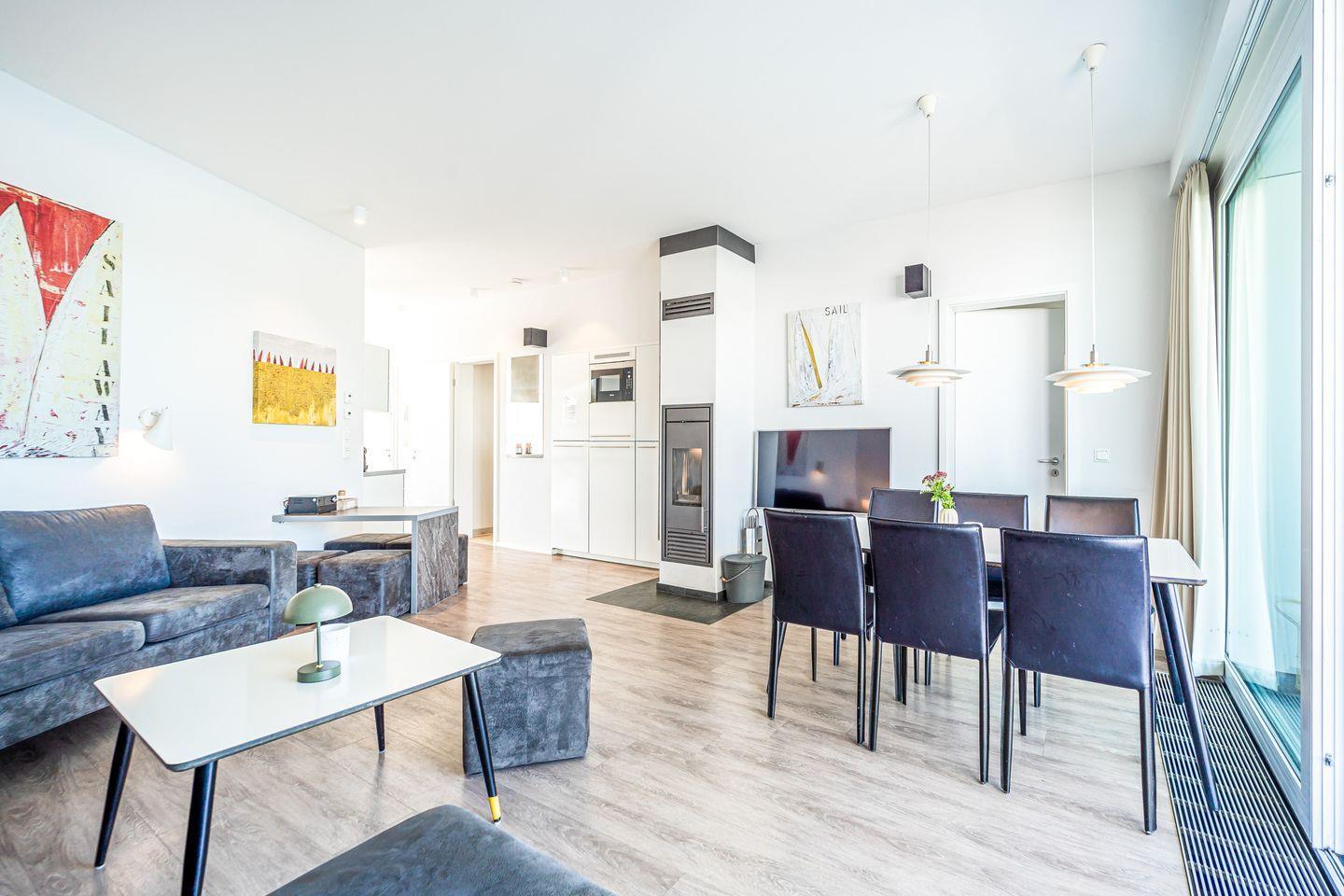 Auf rund 96 m² Wohnfläche erwarten Dich zwei Schlafzimmer, zwei Badezimmer und Platz für bis zu sechs Personen. Von diesem Penthouse im 3. Stock genießt Du durch die großen Fensterfronten und von gleich zwei Dachterrassen einen traumhaften Rundumblick auf die Ostsee.