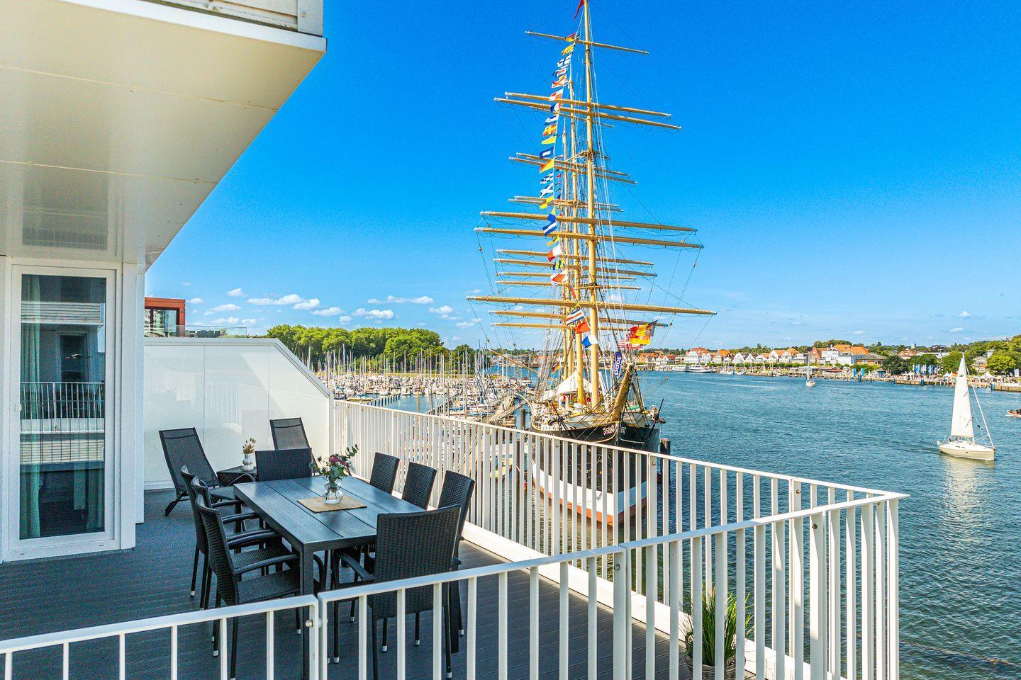 Die Dachterrassen sind nach zwei Seiten ausgerichtet, sodass Du sowohl den Strand als auch den Segelhafen mit der Travemündung überblickst. Das Museumsschiff „Passat“ und die vorbeiziehenden Fähren bieten ein faszinierendes Panorama. Mit Sonnenliegen und Gartenmöbeln ausgestattet, sind die Terrassen der perfekte Ort, um Sonne zu tanken und Deinen Urlaubstag entspannt draußen zu verbringen.