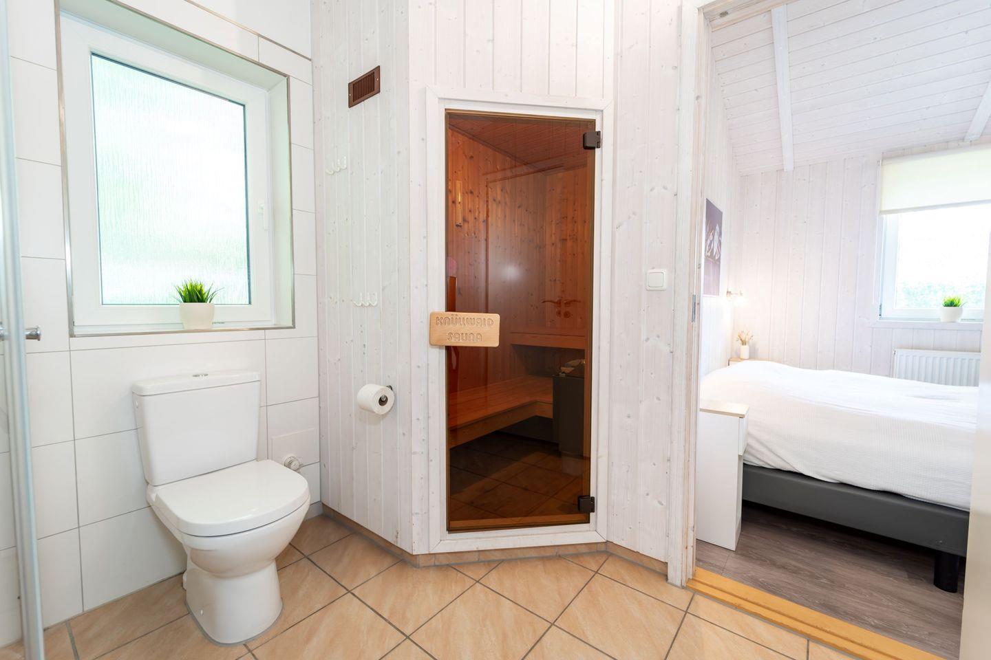 Die private Sauna macht Deinen Aufenthalt besonders entspannend – perfekt nach einem erlebnisreichen Strandtag. Auf der möblierten Terrasse genießt Du sonnige Stunden im Grünen. Sonnenliegen, Sonnenschirm und ein Holzkohlegrill sorgen für echtes Urlaubsfeeling.