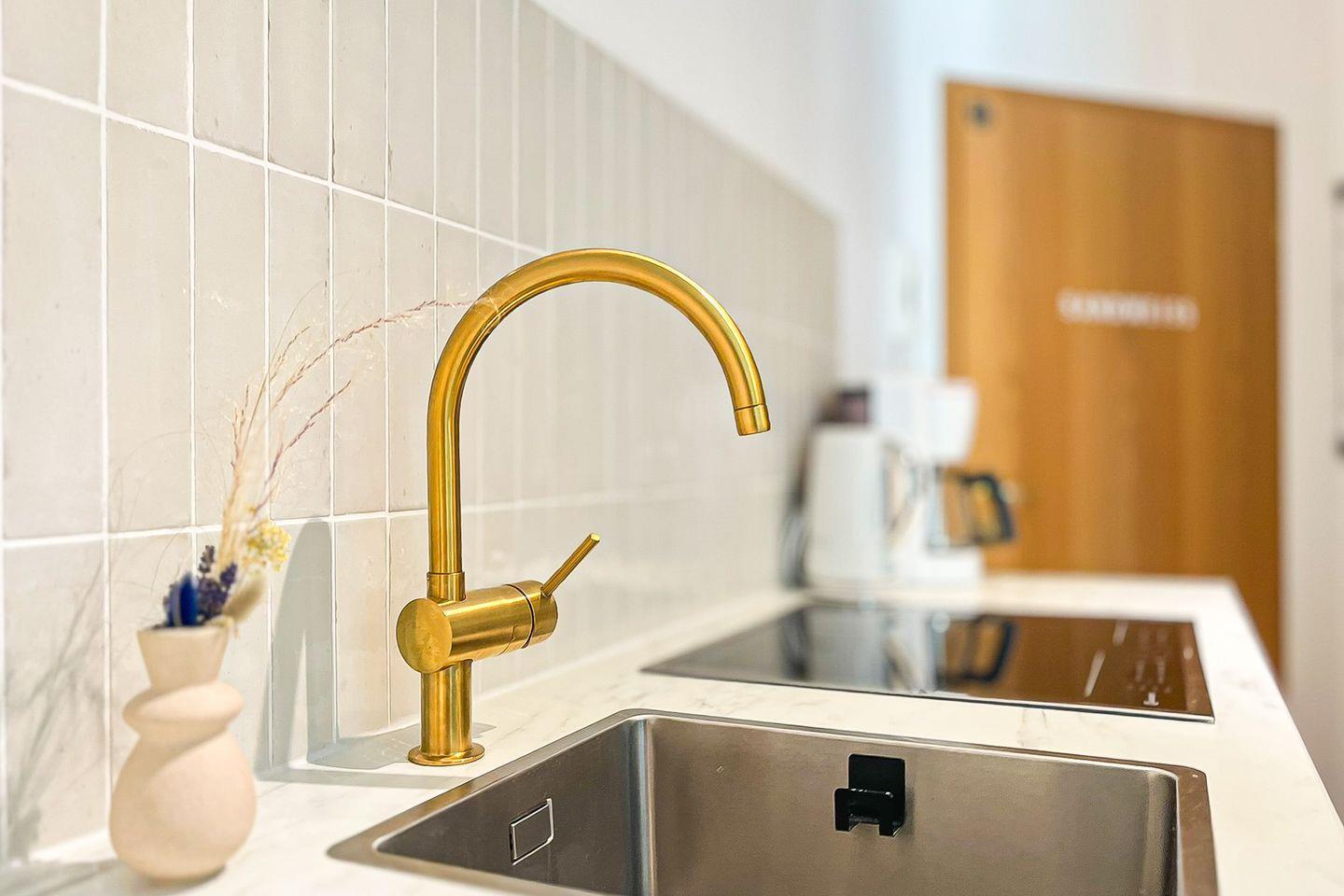 Die offene Küche ist funktional und elegant zugleich. Sie ist mit einem Induktionsherd samt Backofen, Kühlschrank mit Gefrierfach, Geschirrspülmaschine, Kaffeemaschine, Wasserkocher und Toaster vollständig ausgestattet. Ausreichend Geschirr, Besteck, Gläser und Kochutensilien sind selbstverständlich vorhanden. Der Essbereich ist harmonisch in den Wohnraum integriert und lädt zum gemeinsamen Kochen und Genießen ein.