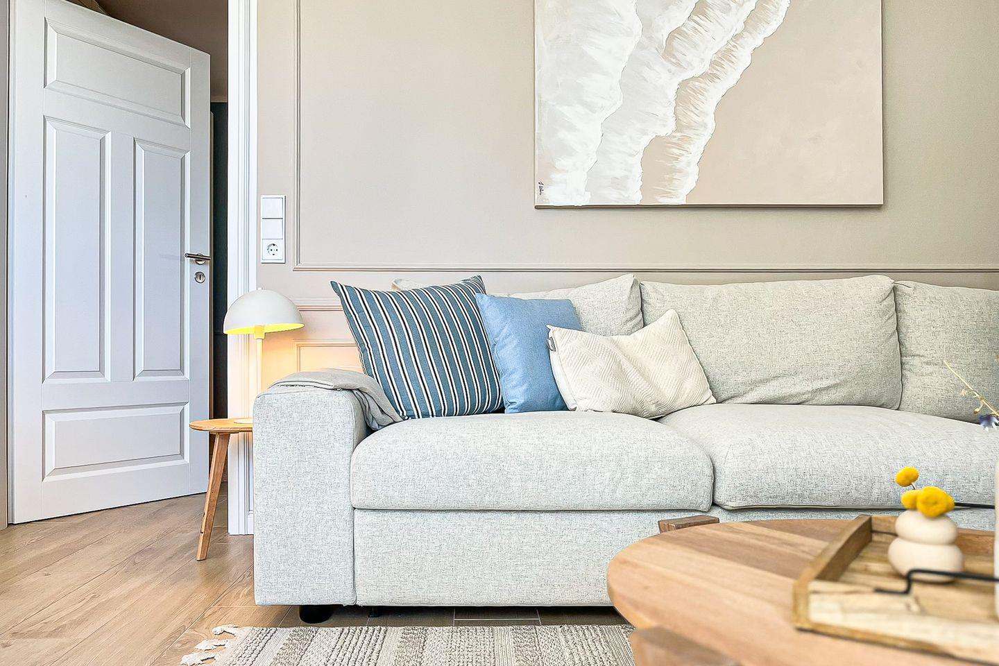 Die Ferienwohnung Sandweiss ist eine stilvolle 2-Zimmer-Wohnung im Hochparterre auf der Halbinsel Priwall in Travemünde.