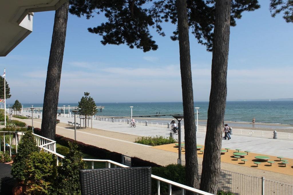 In Travemündes Prachtstraße direkt am Strand finden Sie diese spektakuläre 5 Sterne/Deluxe Wohnung im 1. OG mit 2 Zimmern in Villenlage - absolut ruhig und trotzdem zentral. Von allen Räumen und dem herrlich großen Balkon haben Sie eine 180° Blick auf den Strand, das Meer und die Promenade. Einen besseren Blick finden Sie in Travemünde nicht! Den Strand erreichen Sie über einen privaten Zugang in 10 Schritten! Die wunderschöne lichtdurchflutete Ferienwohnung ist vollständig renoviert und liebevoll eingerichtet: teils mit Birnbaum Parkett, teils mit Granit das Badezimmer ist in Naturstein und Granit luxuriös gestaltet. Die Einrichtung ist exklusiv: 46"LCD 100 Hertz, SZ 32" LCD-TV als Zweitfernseher, Designermöbel. Die offene Küche ist mit neuster Technik namhafter Hersteller ausgestattet. Sie können auf dem mit Bankiray Holzplanken ausgelegten Balkon grillen (Elektrogrill).