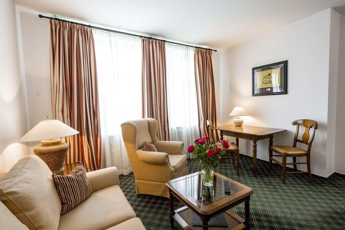 Auf der einen Seite hat man einen direkten Blick auf das Herrenhaus mit seinem Rondell, auf der anderen Seite blickt man in den ruhigen Garten. Ein Stellplatz für das Auto befindet sich nur wenige Meter entfernt.