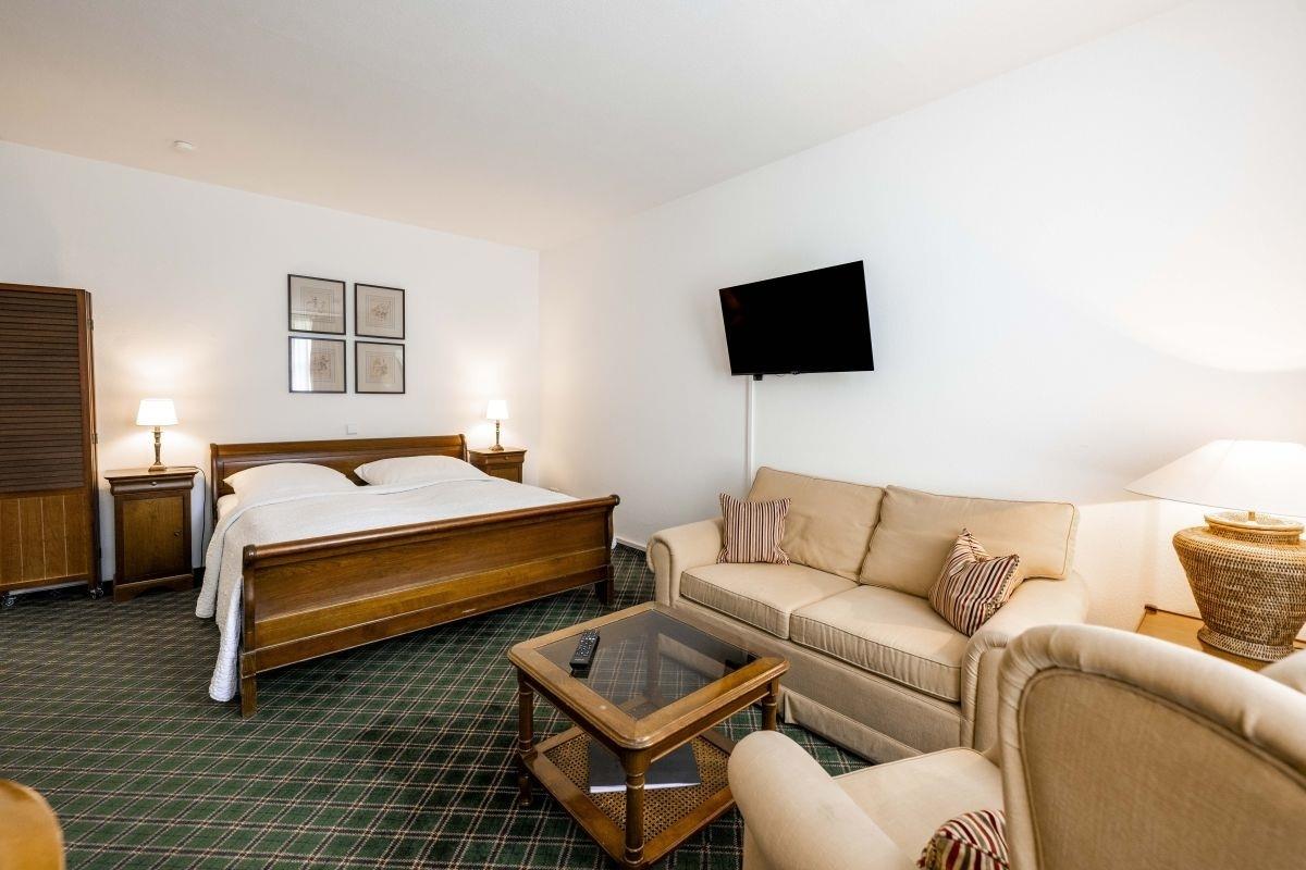 Die Ferienwohnung für 2 Personen befindet sich im Erdgeschoss eines der beiden Kavaliershäuser innerhalb des Ensembles von Schloss Lüdersburg. Sie verfügt über ein Wohn-/Schlafzimmer mit Essbereich und Küchenzeile mit voll ausgestatteter Einbauküche und gemütlichem Tisch für vier Personen.