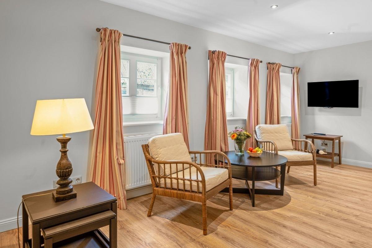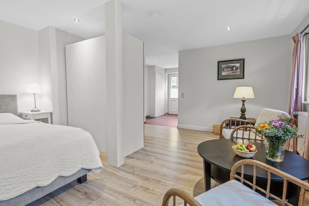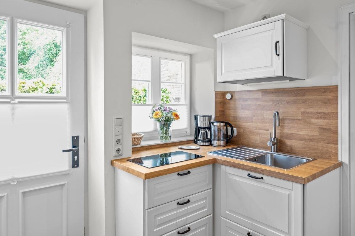 Die Ferienappartements 15a und 15b sind gemütlich eingerichtet und verfügen jeweils über ein Wohn-/Schlafzimmer und eine Einbauküche mit Essbereich. Im Wohn-/Schlafzimmer befindet sich ein großer Schrank und ein Flachbild-TV.