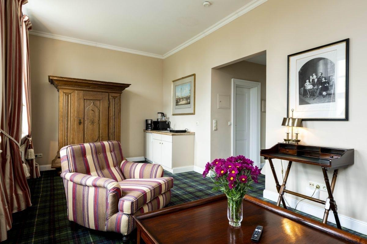 Das liebevoll eingerichtete Appartement befindet sich im Schloss Lüdersburg. Es bietet mit einem durchgehenden Gemeinschaftsbereich aus Wohn-/Schlafbereich und Couchecke Platz für zwei Personen. Der Schlafbereich ist mit zwei Einzelbetten ausgestattet. Die Küche wurde standardmäßig ausgestattet.