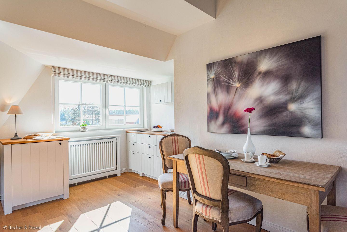In der Kochnische findest du neben einem Kochfeld mit zwei Kochplatten einen kleinen Kühlschrank mit Gefrierfach. Die vorhandenen Küchenutensilien helfen dir beim Kochen und Genießen. Außerdem stehen dir für dein Frühstück ein Toaster sowie für die Kaffee- und Teezubereitung eine Nespresso Kapselmaschine und ein Wasserkocher zur Verfügung.