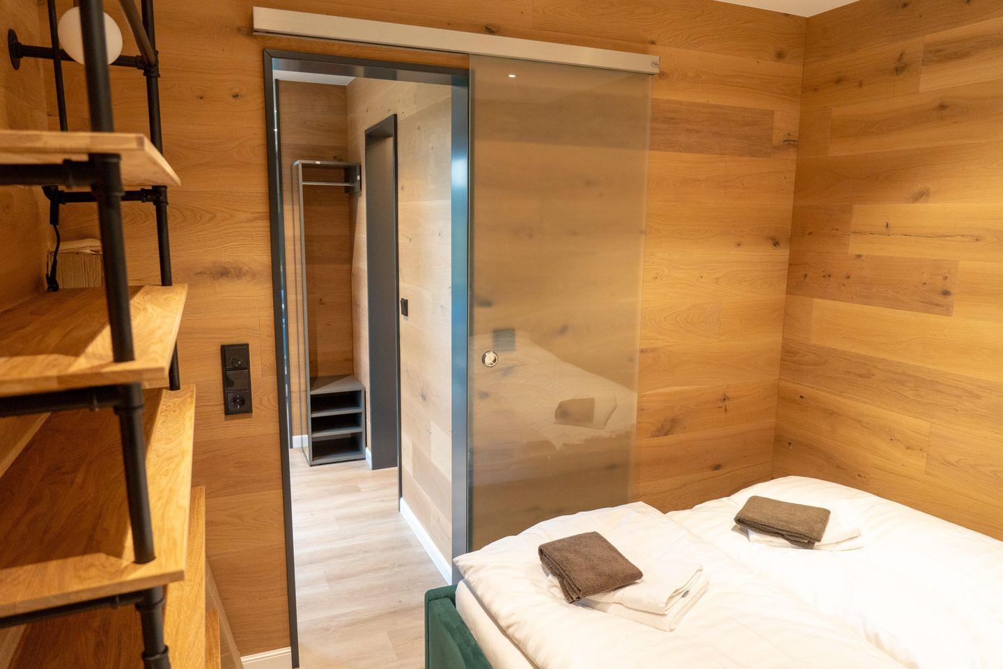 Du schläfst im separaten Schlafzimmer in einem Doppelbett (160 cm x 200 cm), für das wir dir die Bettwäsche zur Verfügung stellen. Für einen ausgeruhten Schlaf hast du außerdem die Möglichkeit, die Fenster mit Plissees zu verdunkeln. Zudem bieten ein Kleiderschrank und weitere Ablagemöglichkeiten Platz für dein Reisegepäck.