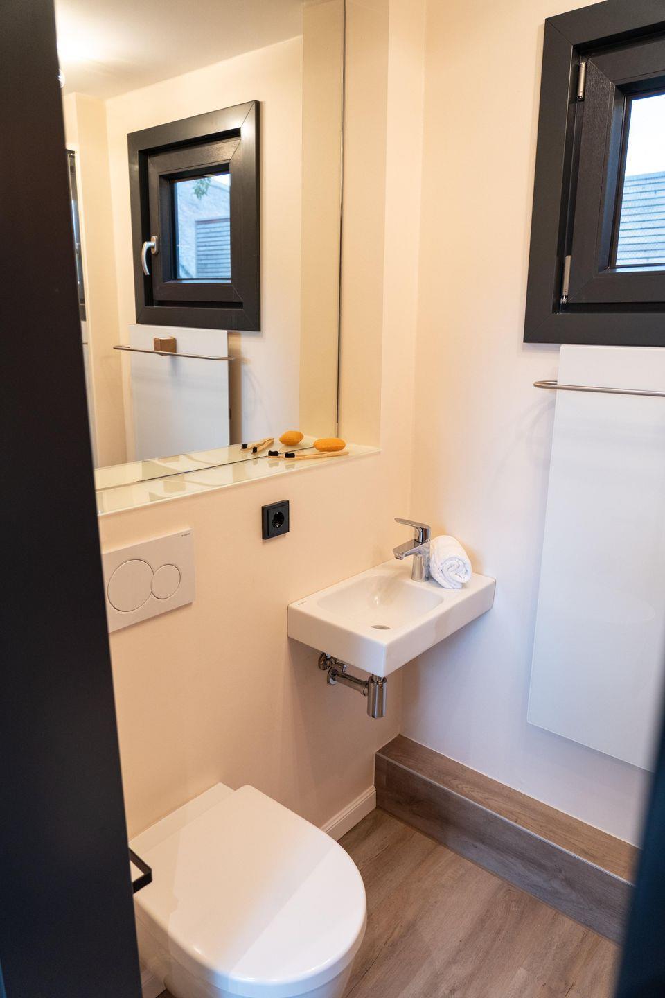 Das modern gestaltete Badezimmer mit einer großzügigen Raindance Dusche verfügt über eine Handtuchheizung und ausreichend Ablagemöglichkeiten für deine persönlichen Kosmetikprodukte. Handtücher und einen Haartrockner bekommst du von uns gestellt.