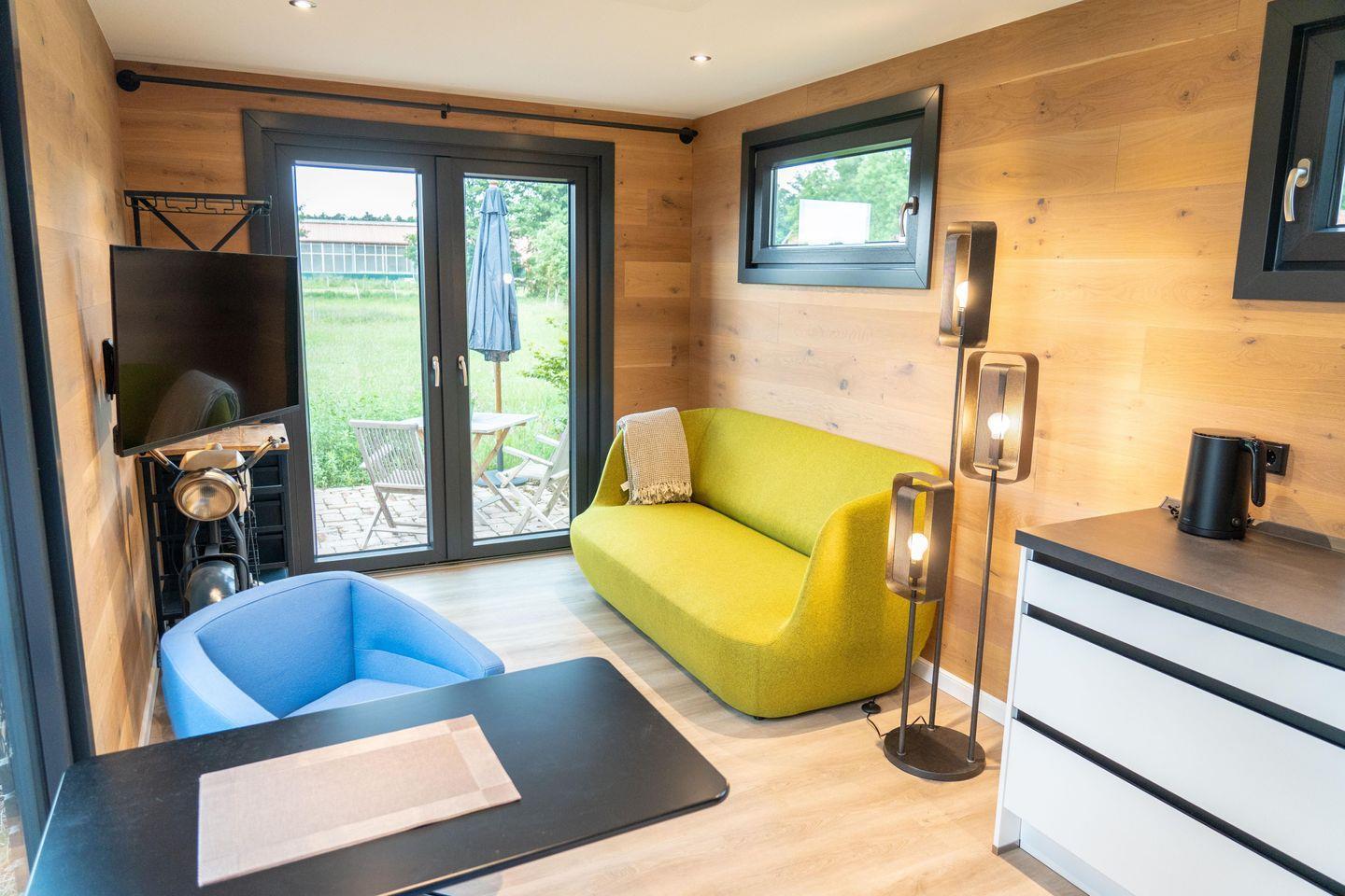 Das im Jahr 2023 gebaute 25 qm große 2-Zimmer Tiny House (Nichtraucher) bietet Platz für zwei Personen. An den Wohnbereich grenzt die Terrasse mit Gartenmöbeln an. Von dort kannst du einen atemberaubenden Südblick über die angrenzenden Pferdewiesen genießen. Auf dem Grundstück stehen Stellplätze für dein Auto zur Verfügung.