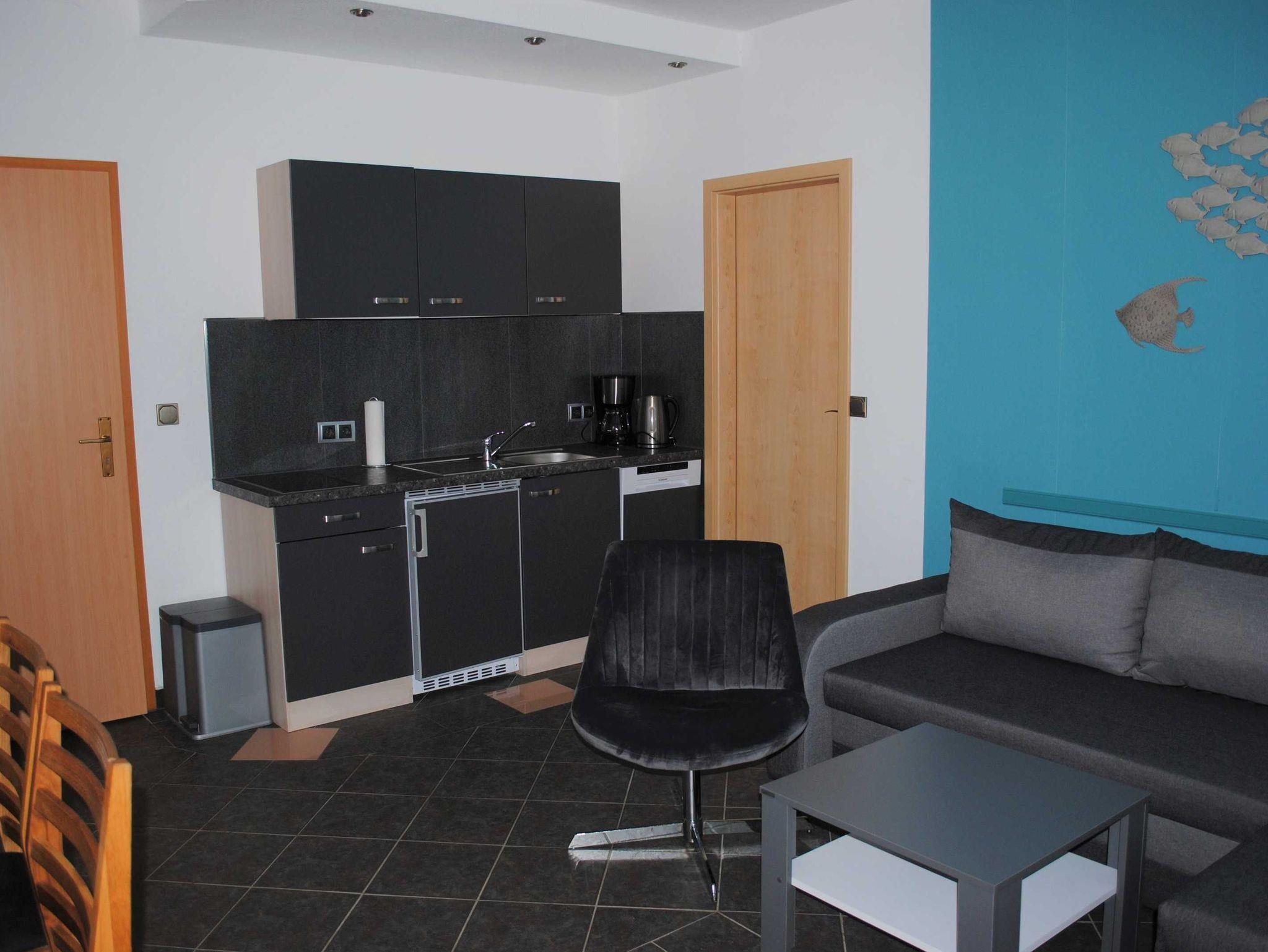 Die schöne Ferienwohnung ist ca. 76m² groß und verfügt über einen Wohnbereich mit Sitzgelegenheit, einem Flat-TV sowie über einen Esstisch. Die offene Küchenzeile ist mit einem Cerankochfeld mit 2 Kochfeldern, Kühlschrank, Kaffeemaschine, Mikrowelle sowie einer Spülmaschine ausgestattet. Das erste Schlafzimmer verfügt über ein Doppelbett, das zweite Schlafzimmer ist mit einem Etagenbett ausgestattet. Das Badezimmer verfügt über Dusche/WC. Auf dem Grundstück steht Ihnen eine Sitzecke mit Grillmöglichkeit zur Verfügung. Die Erstausstattung Bettwäsche und Handtücher ist bereits inklusive. Ebenso ein PKW-Stellplatz. Ein Babybett sowie ein Hochstuhl stehen bei Bedarf kostenfrei zur Verfügung.